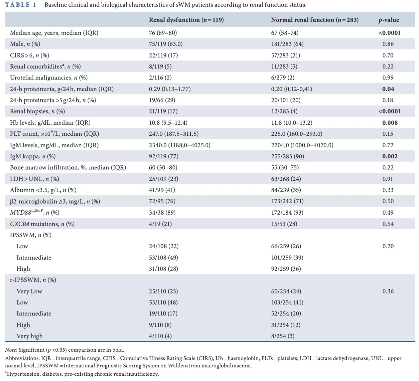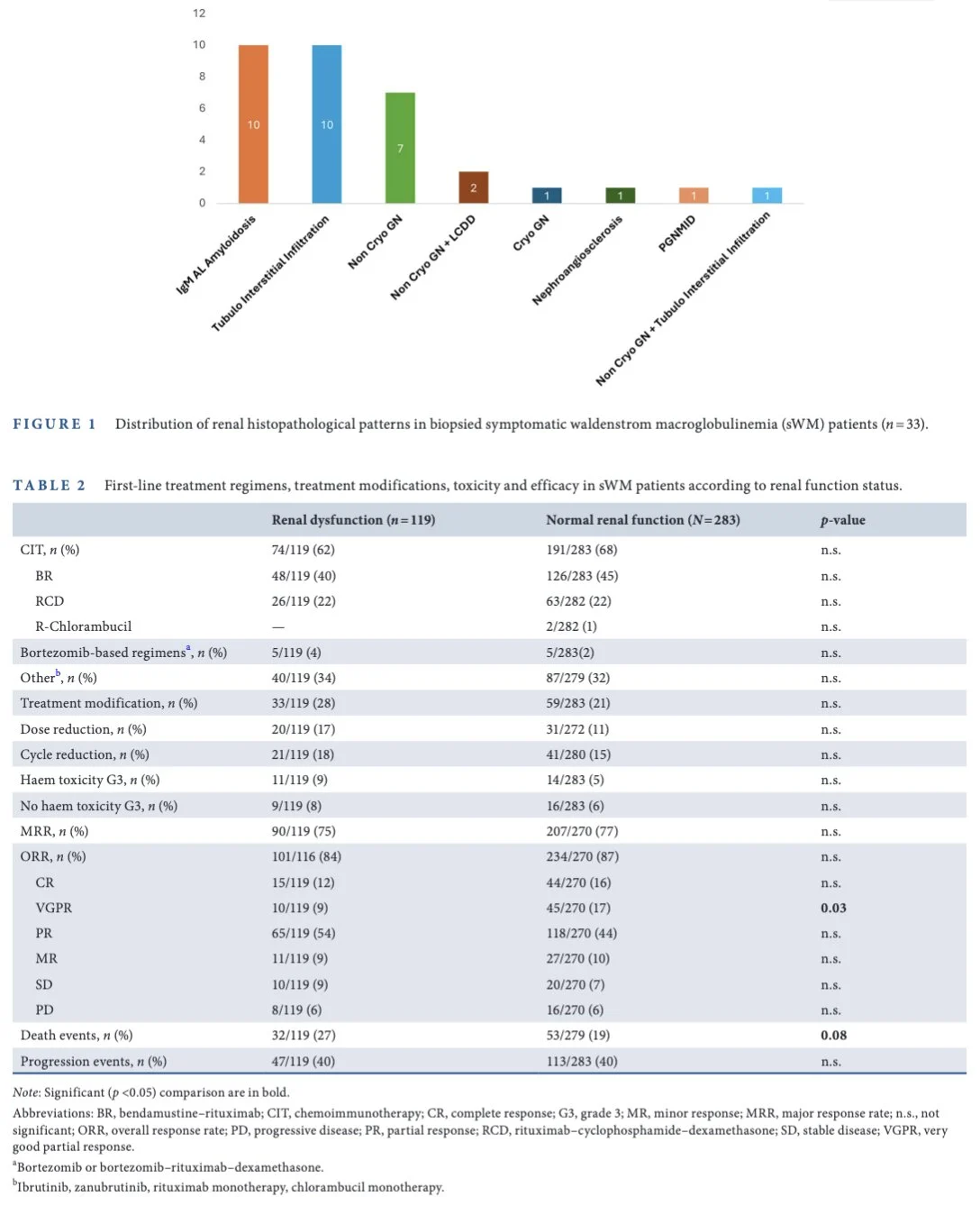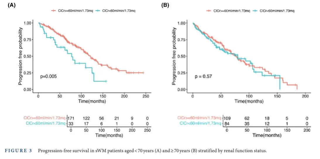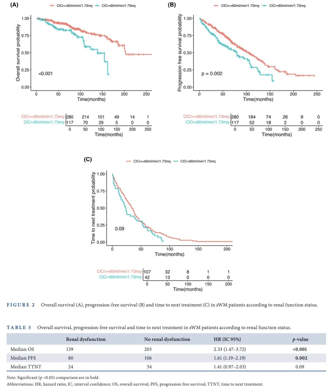 Nationwide Italian study finds renal dysfunction in symptomatic #Waldenström macroglobulinemia assoc w/ worse median OS (139 vs 203 mos, p<0.001) and PFS (80 vs 106 mos, p=0.002); chemoimmunotx assoc w/ better median PFS.”