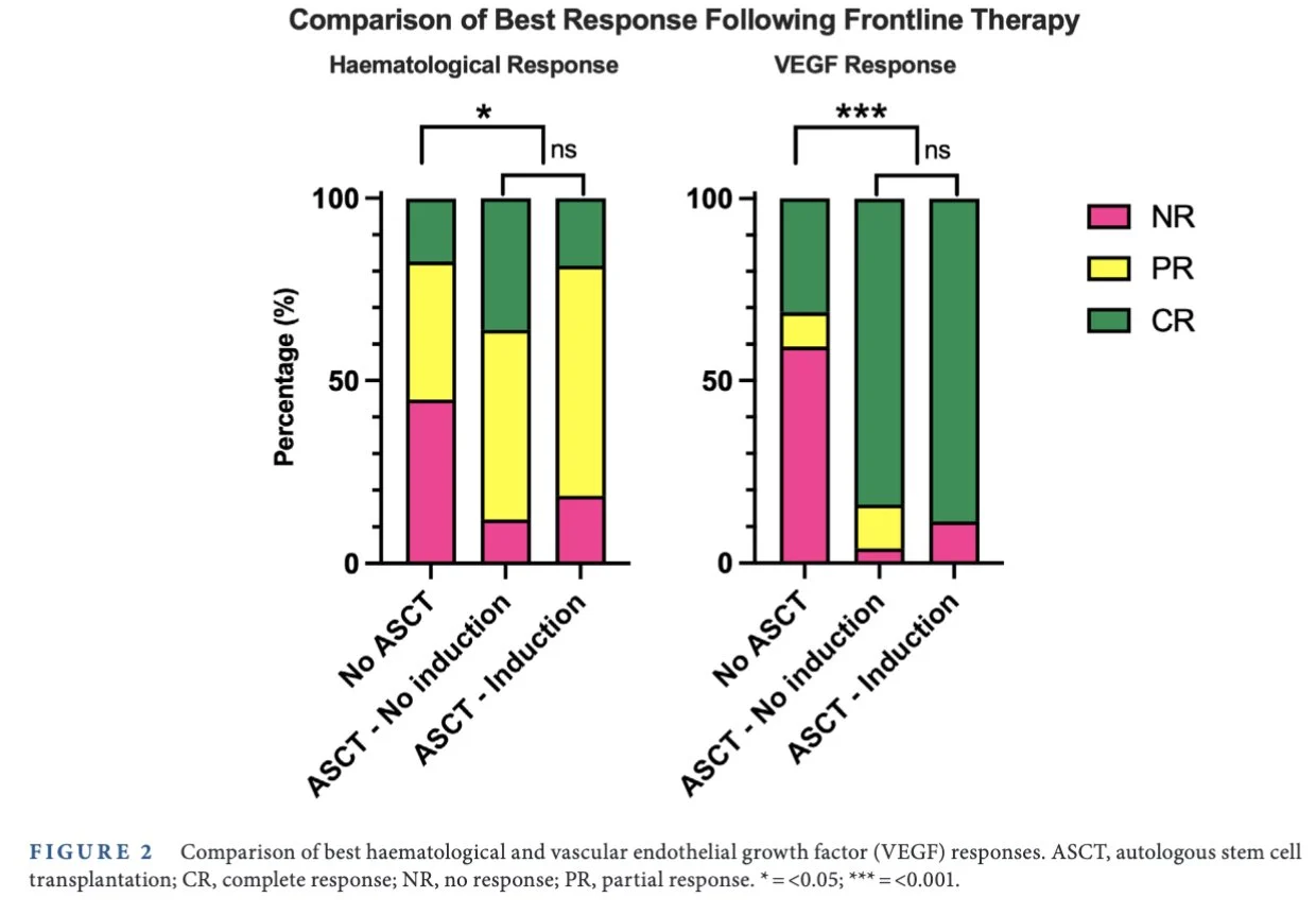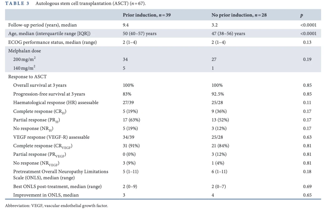 Study of front-line systemic treatment outcomes in POEMS finds ASCT highly efficacious w/ 5- and 10-yr OS of 100% & 90.7%, respectively; PFS of 76.5% and 60.0%; complete VEGF and/or heme response associated w/ lower relapse․”