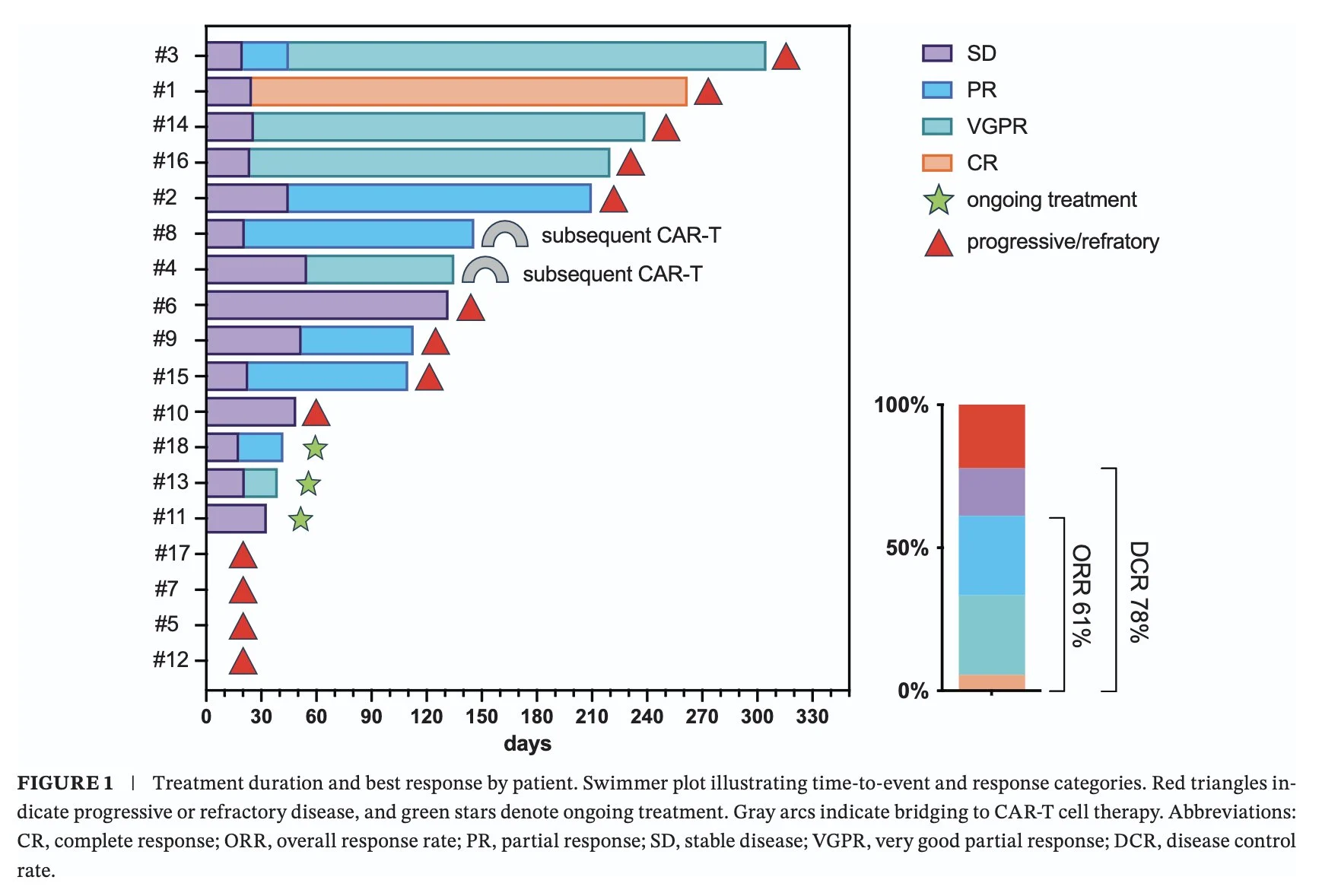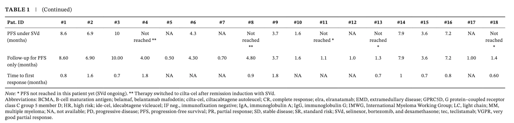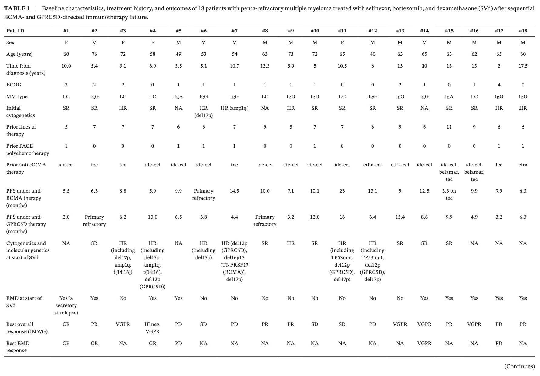 Selinexor/bortez/dex after sequential immunotherapy failure in penta-refractory myeloma shows ORR 61%, disease control 78%, median PFS 4.3 mos; hematologic toxicities under SVd manageable & no treatment-related deaths.”