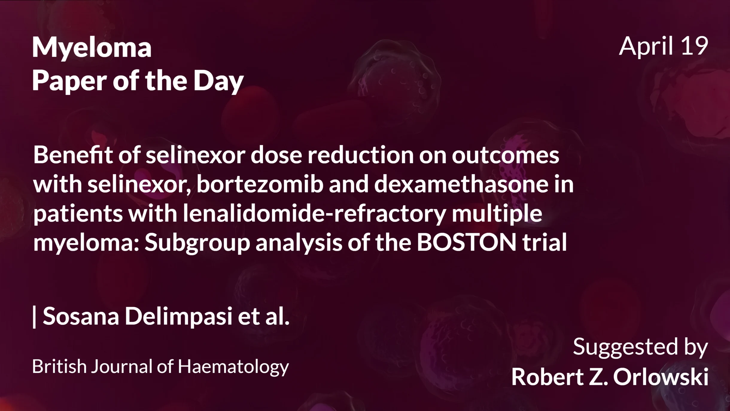 Title: Benefit of selinexor dose reduction on outcomes with selinexor, bortezomib and dexamethasone in patients with lenalidomide-refractory multiple myeloma: Subgroup analysis of the BOSTON trial