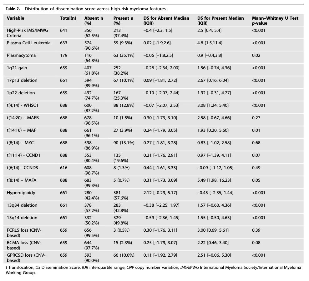 Title: Gene expression-based dissemination score predicts early spread and poor outcomes in multiple myeloma