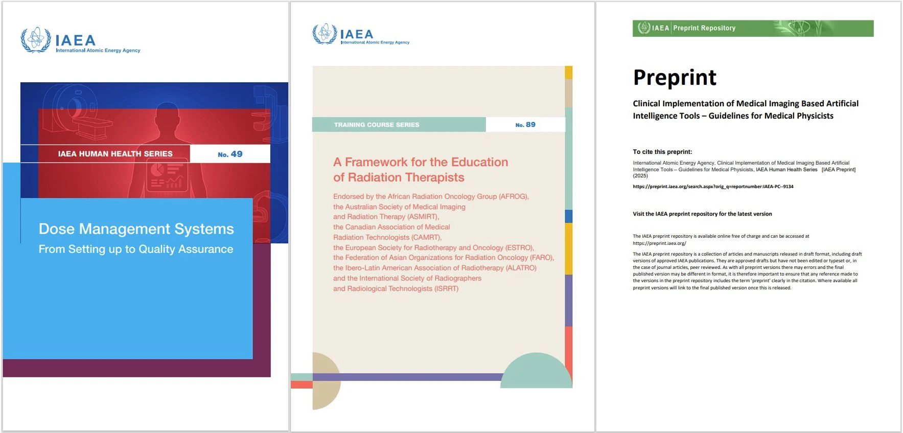 Several guidance publications were completed, covering dose management systems, clinical implementation of AI in medical imaging, and education frameworks for radiation therapists: