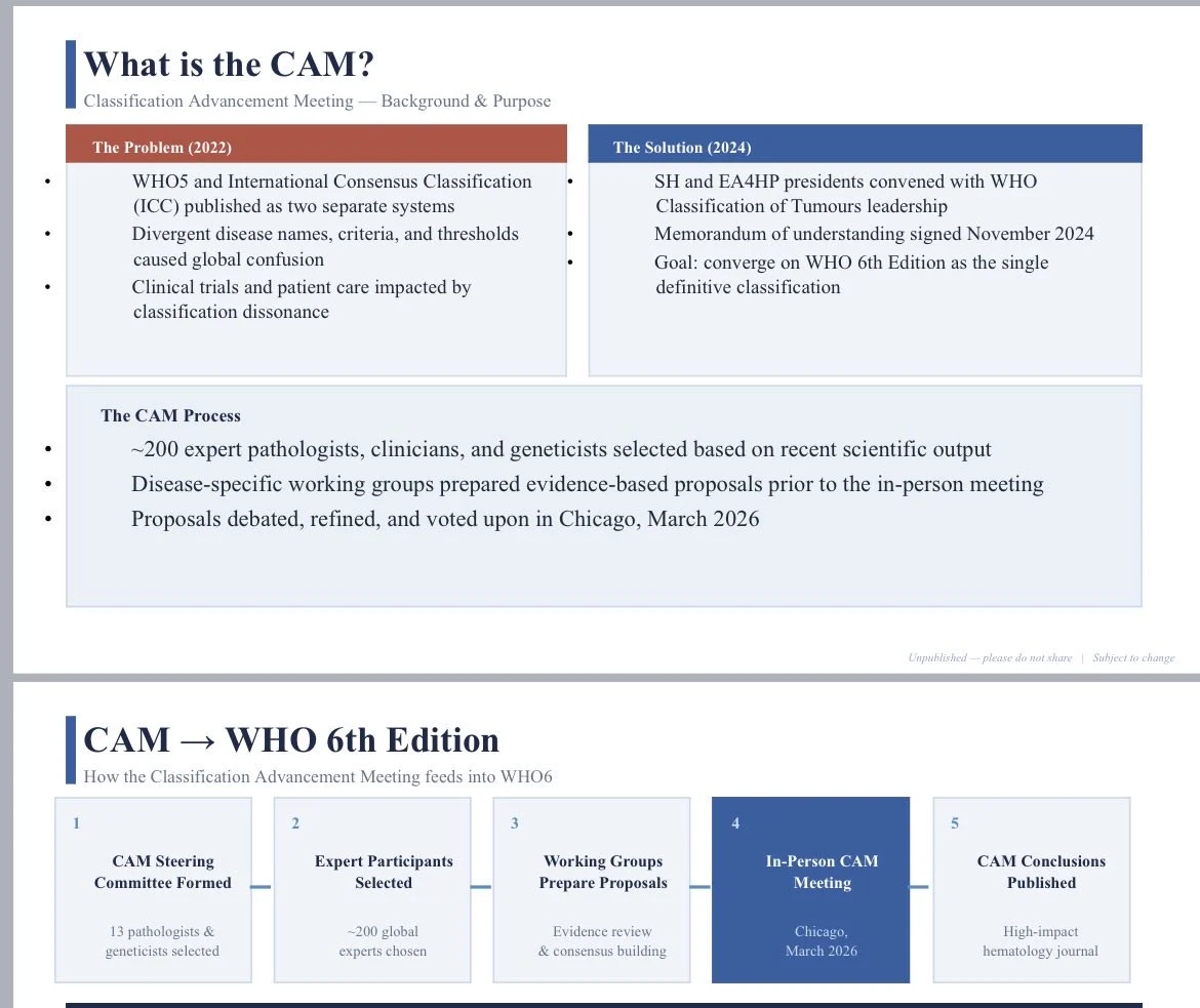 “An historic gathering. A monumental achievement bringing all of us together recently, as we gathered in Chicago this week for the first ever CAM – Classification Advancement Meeting – pathologists and clinicians from all over the world, experts in our own individual fields.