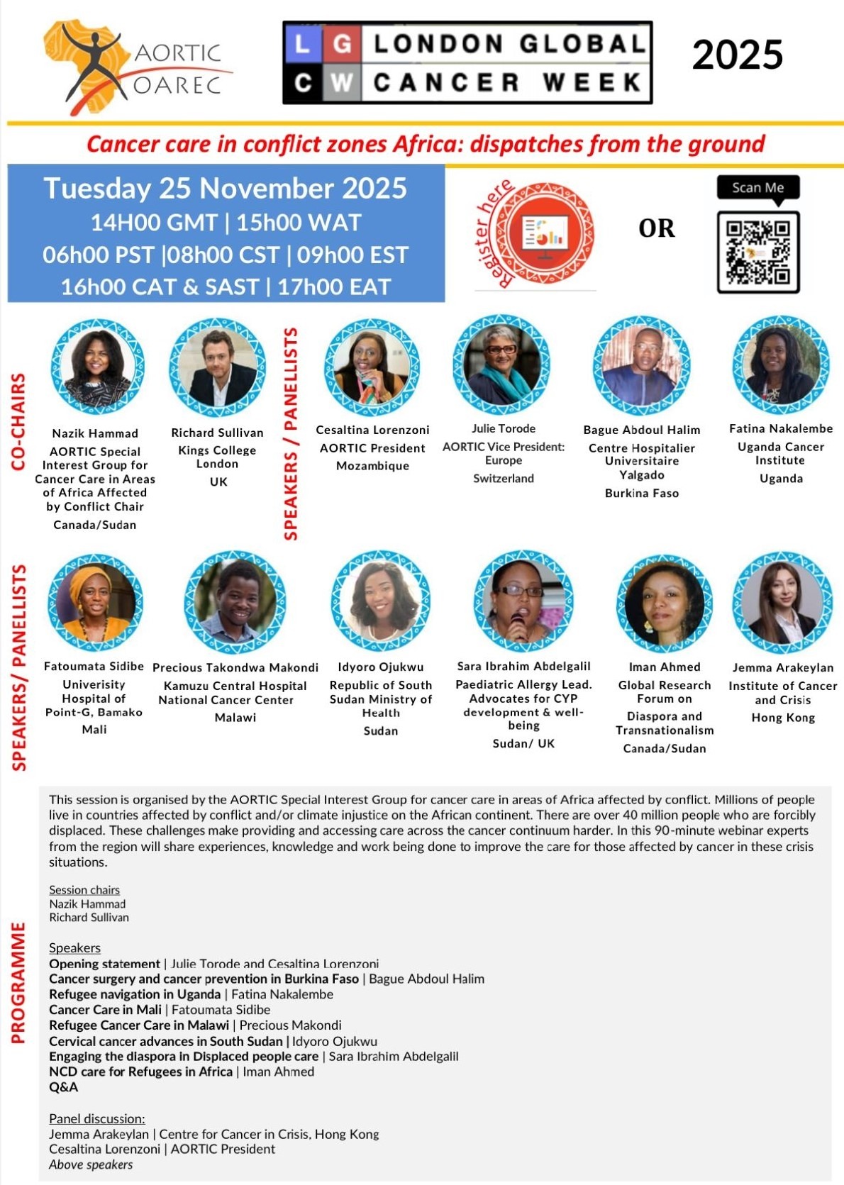 Join us tomorrow at the London Global cancer week November 25 at 9 am Eastern as the AORTIC SIG for cancer in conflict and other emergency settings brings you dispatches from many countries discussing refugees, IDPs, disruptions of cancer care across the continuum, local responses including in host countries, care in post conflict settings and for the first time, some of our own data.”