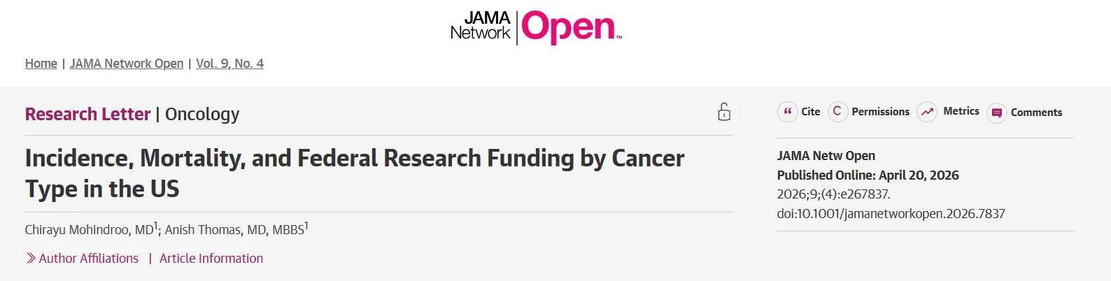 Nicholas DeVito, Assistant Professor of Medicine at the Division of Medical Oncology at Duke University, shared a post by JAMA Network Open on LinkedIn, adding: