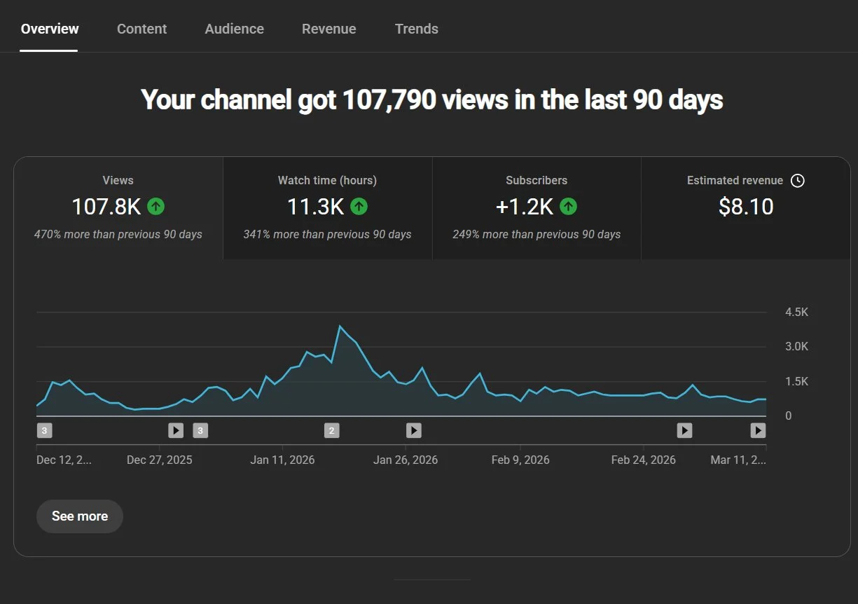 - 126K+ views, 2.2K subscribers.