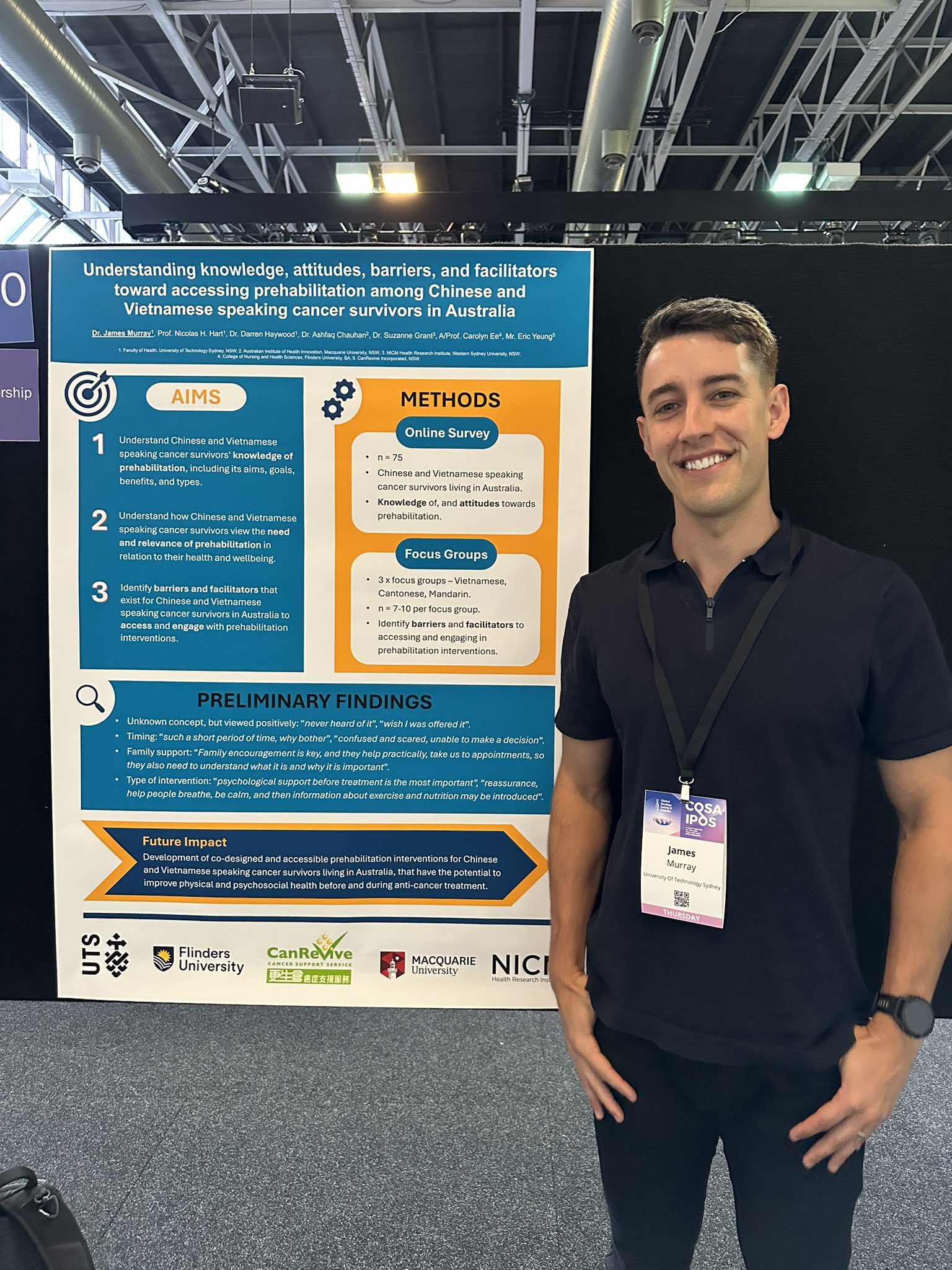 “Some of our UTS Health Cancer Survivorship team at the COSA IPOS 2025 conference – presenting work on prehabilitation (CALD communities), Cancer-Related Cognitive Impairment, and of course, Chairing sessions – amazing work as always by Darren Haywood, James Murray, and Jen.”