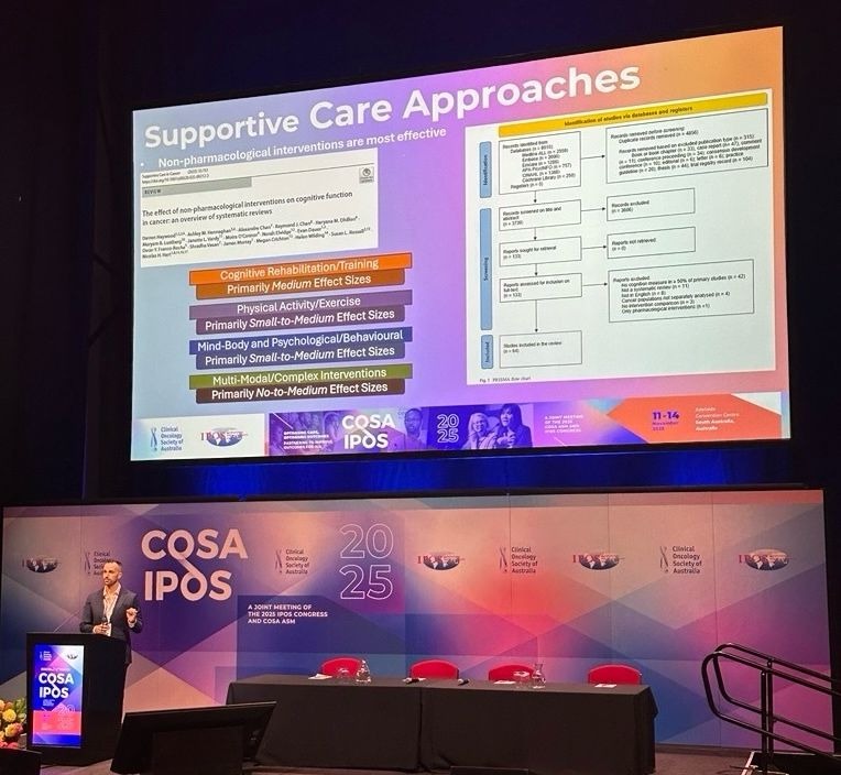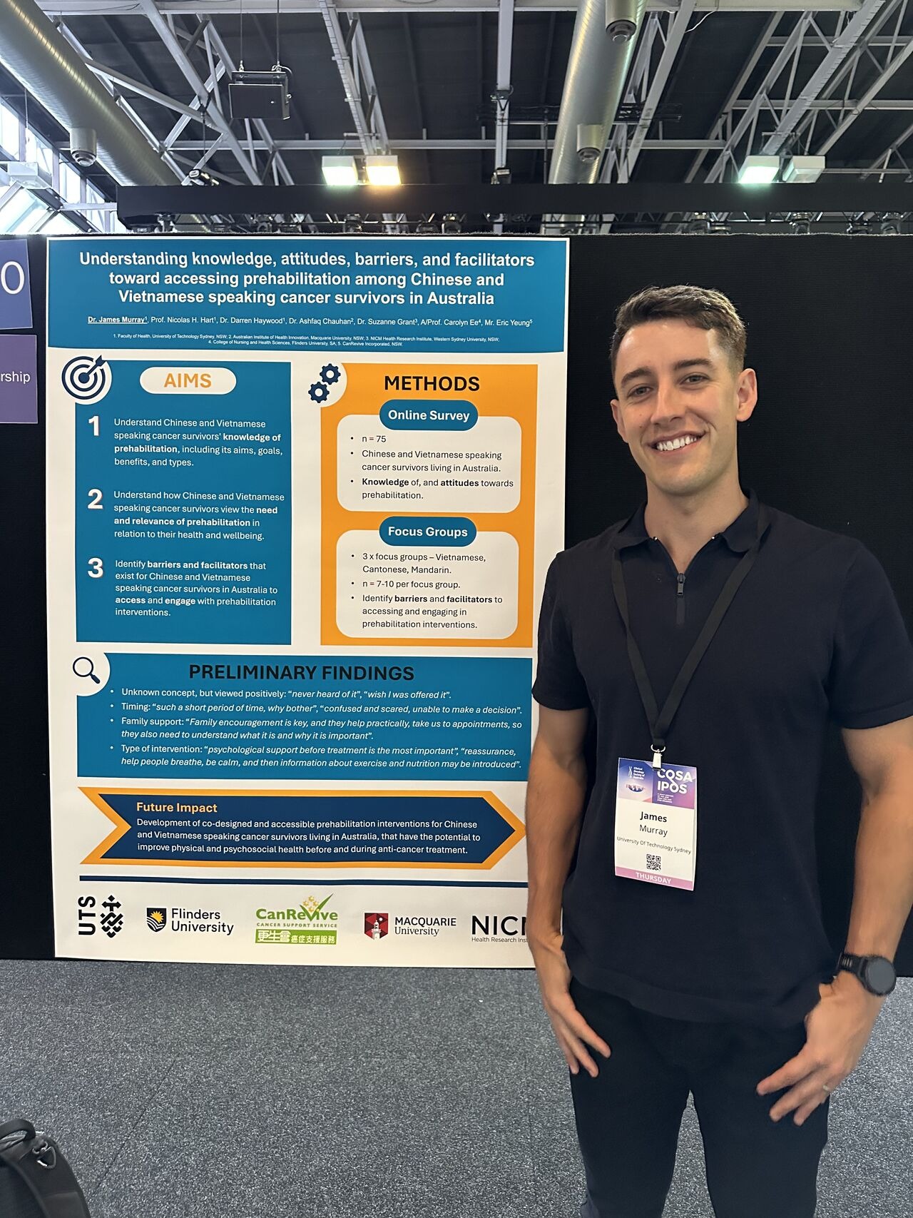 “Some of our UTS Faculty of Health Cancer Survivorship team at the COSAIPOS 2025 conference – presenting work on prehabilitation (CALD communities), Cancer-Related Cognitive Impairment, and of course, Chairing sessions – amazing work as always by Darren Haywood, James Murray, and Jenny haywood.”