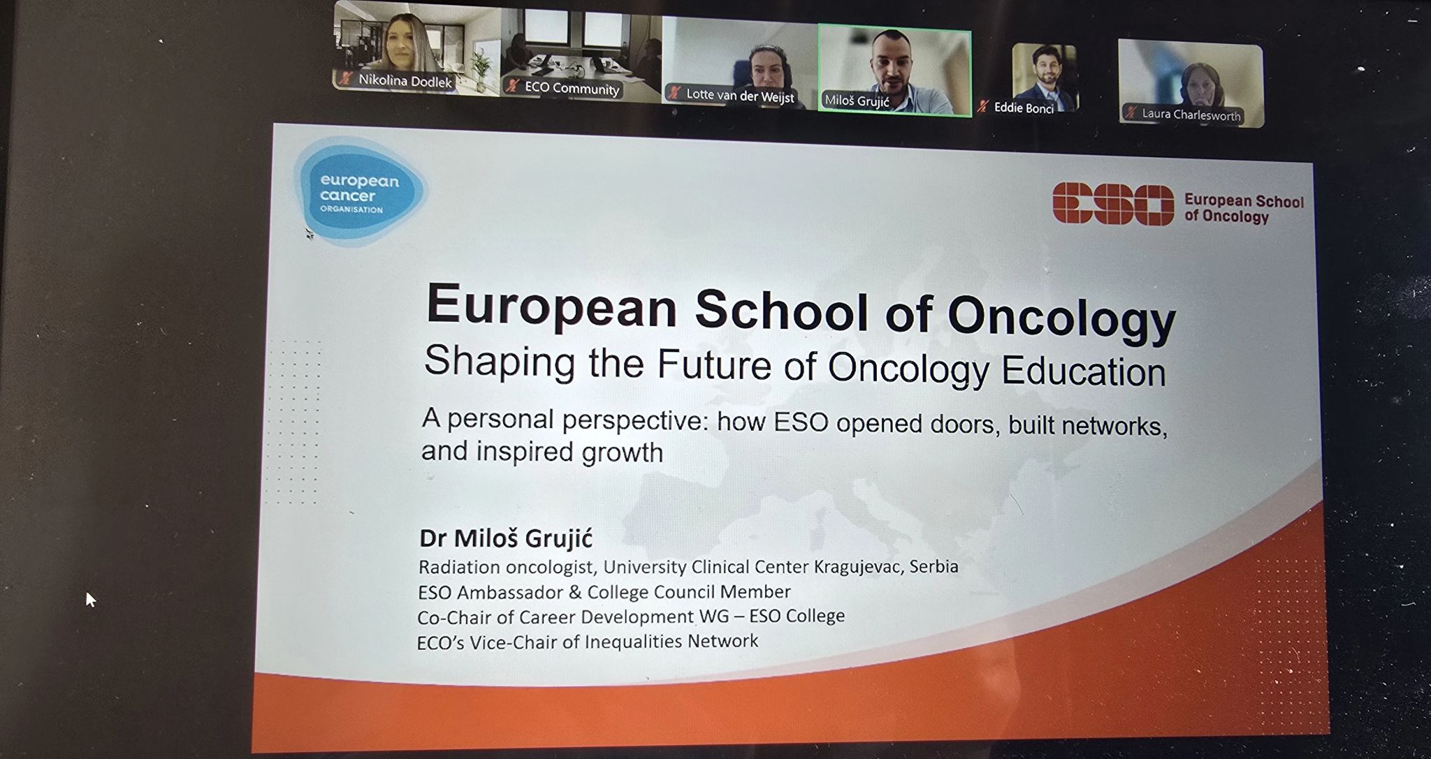 “Such an inspiring European Cancer Organisation YCP group meeting! It was a very engaging discussion, with new opportunities, joint plans, and activities! Thank you, ECO, for supporting us every step of the way. Thanks to Miloš Grujić for a very inspiring presentation and all the valuable information you shared with the group.