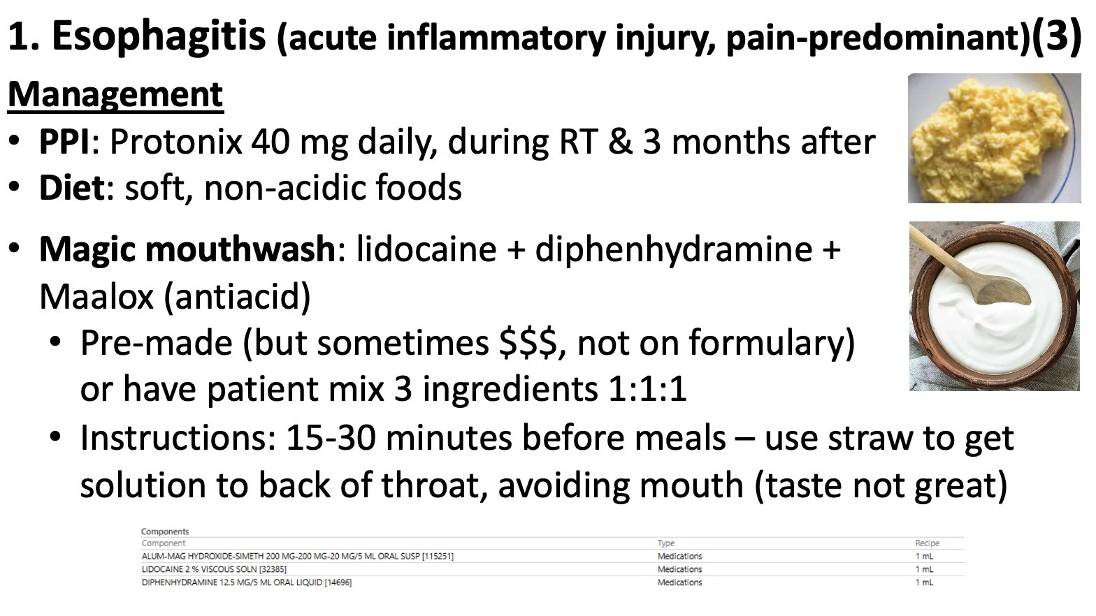 Management summarized. Note premade MMW can be $$$ (or not on formulary), so the EPIC script for mixing is below.