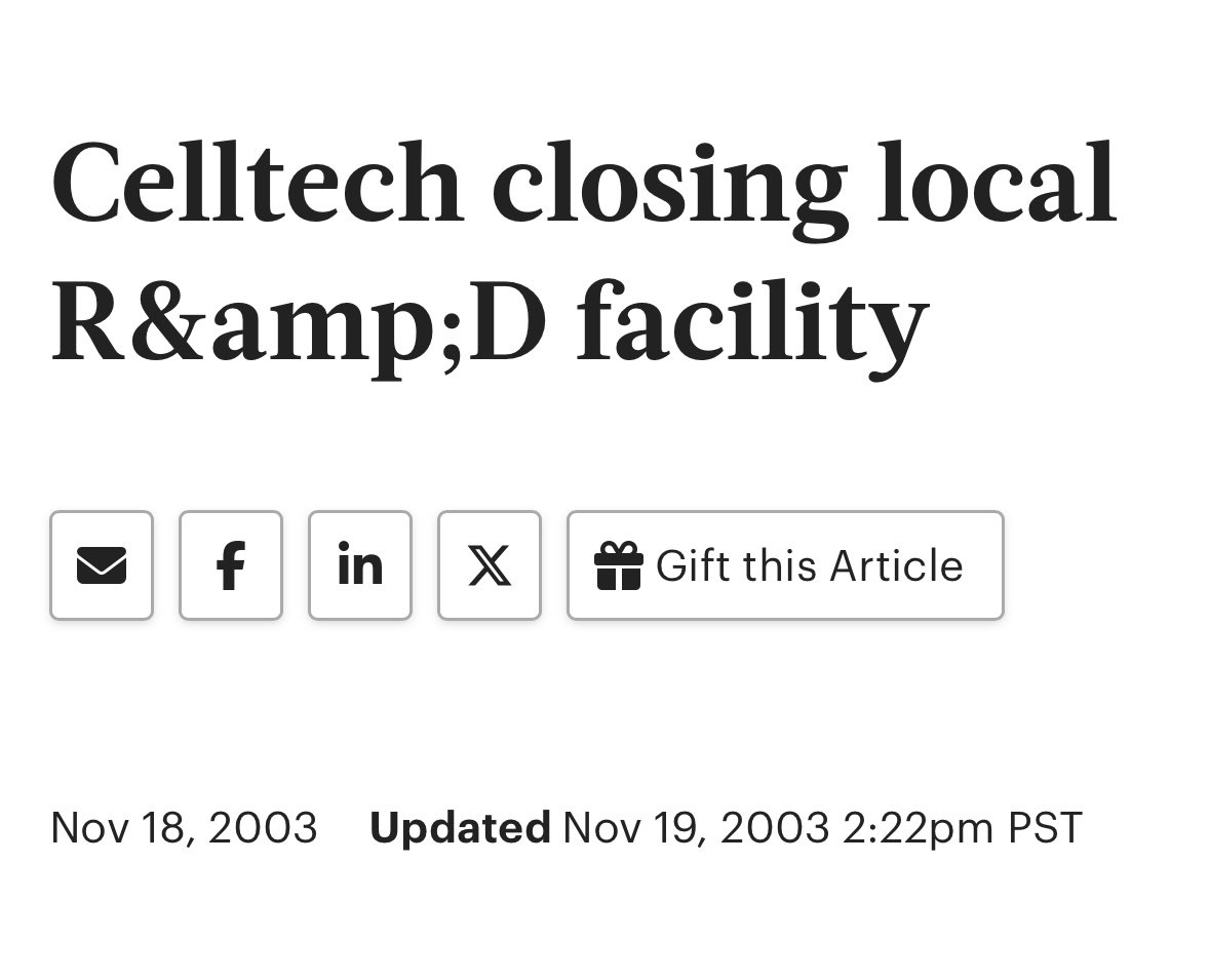 The two Nobel Prize laureates were working at the R&D facility of Celltech Chiroscience in Bothell WA when they discovered FoxP3 and published their seminal study. Barely two years later the company announced closure of the facility! Bothell has a storied biotech legacy, btw.”
