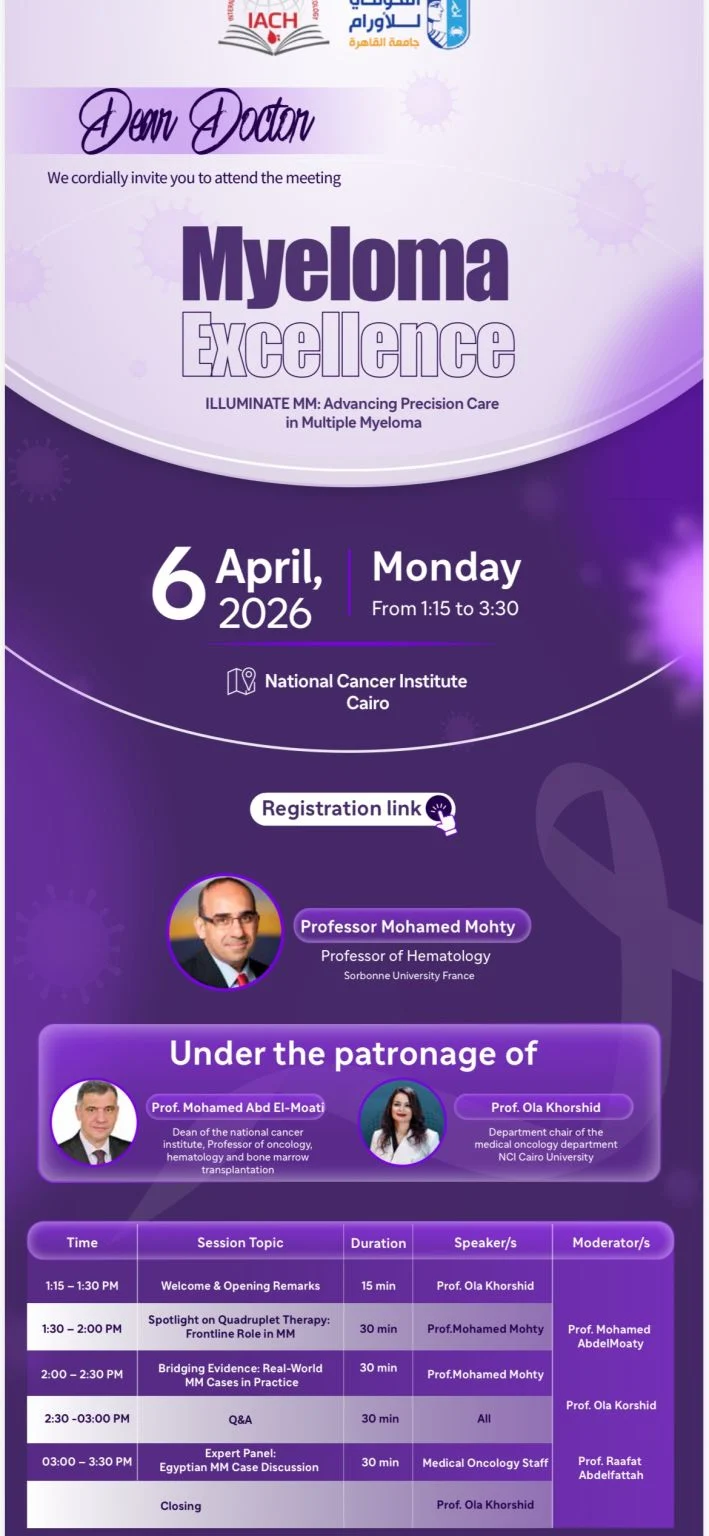 “You are warmly invited to attend an important Medical Oncology Department Grand Round at the National Cancer Institute, Cairo University.