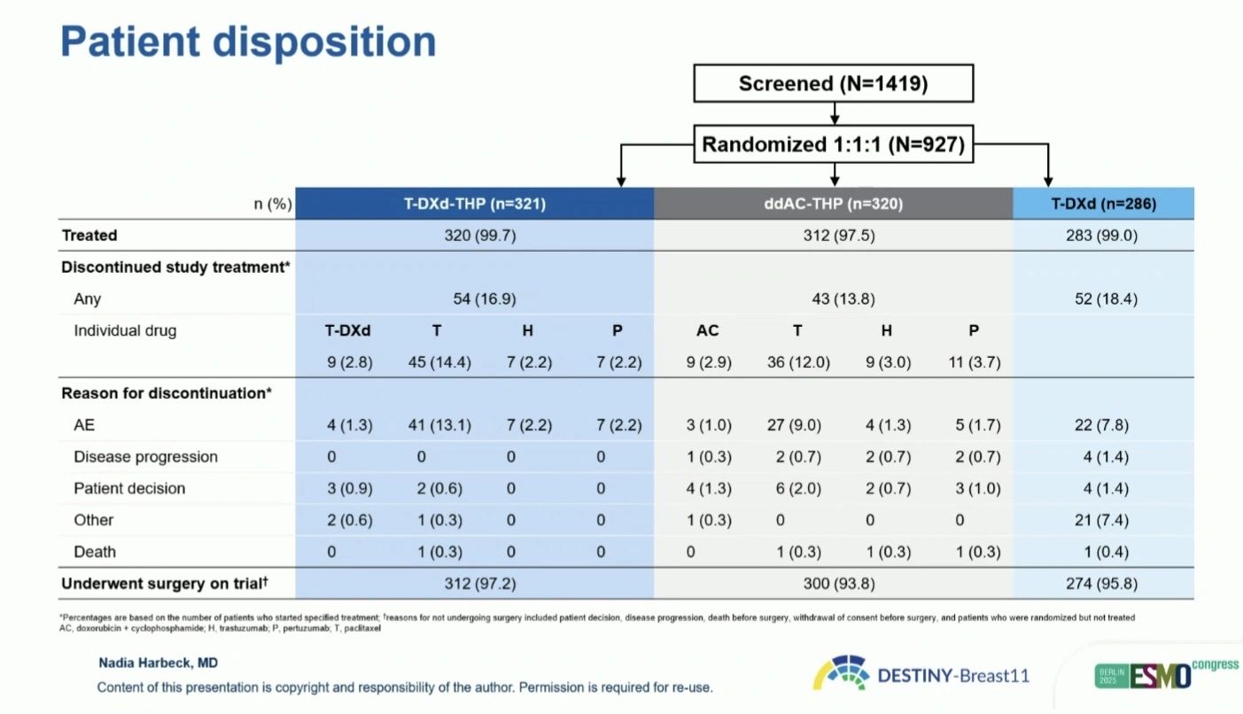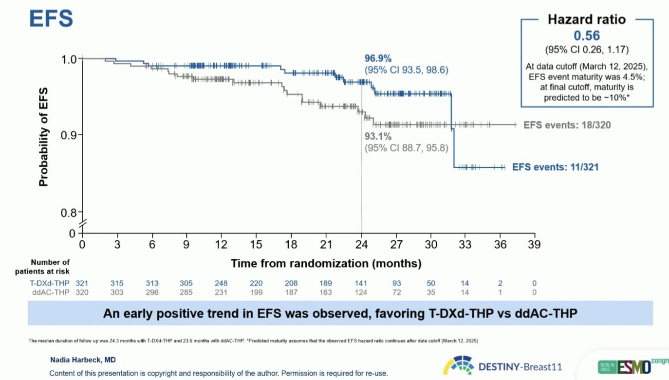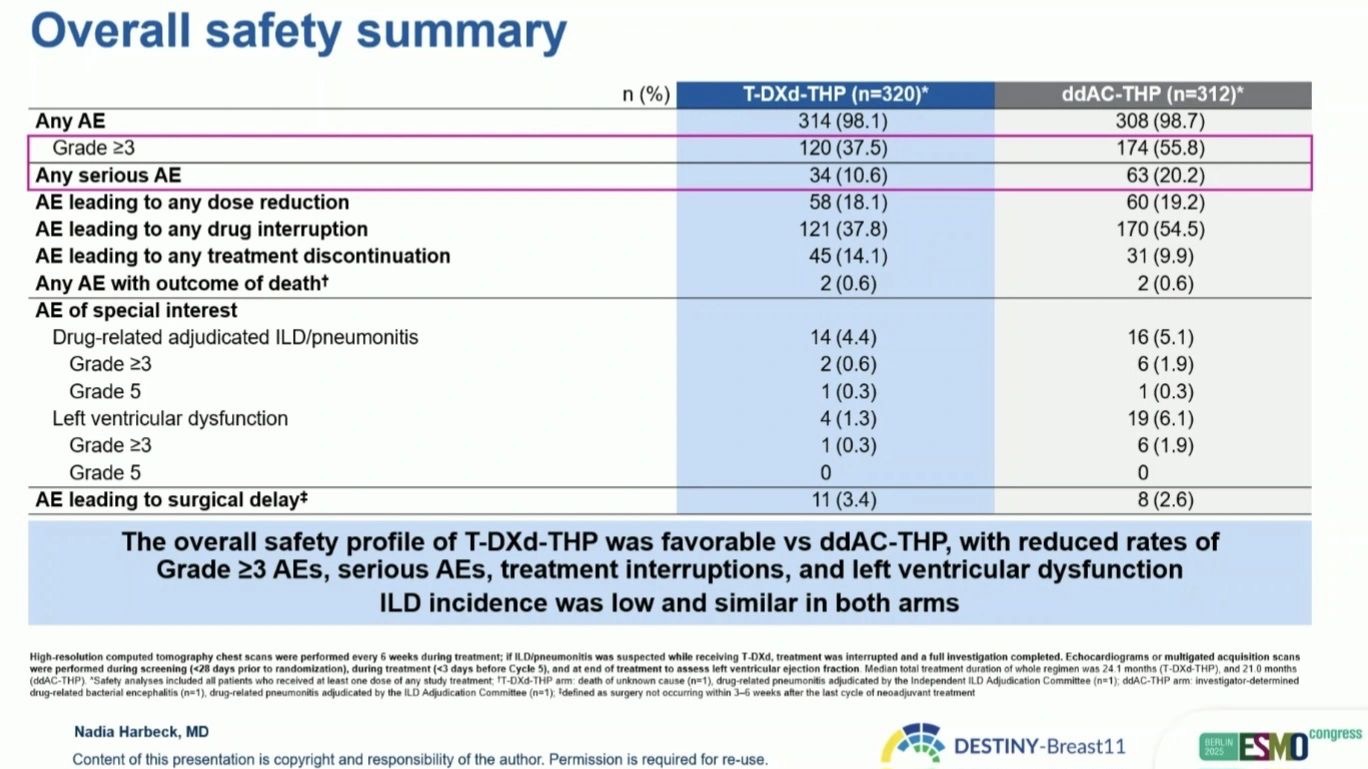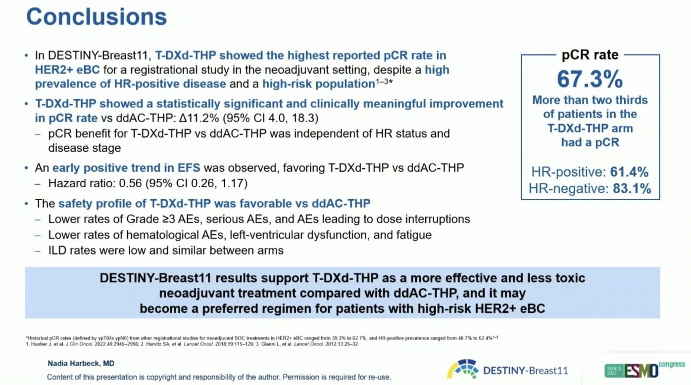One of the most practice-defining presentations today was DESTINY-Breast11, evaluating trastuzumab deruxtecan (T-DXd) in the neoadjuvant setting for high-risk, HER2-positive early breast cancer.