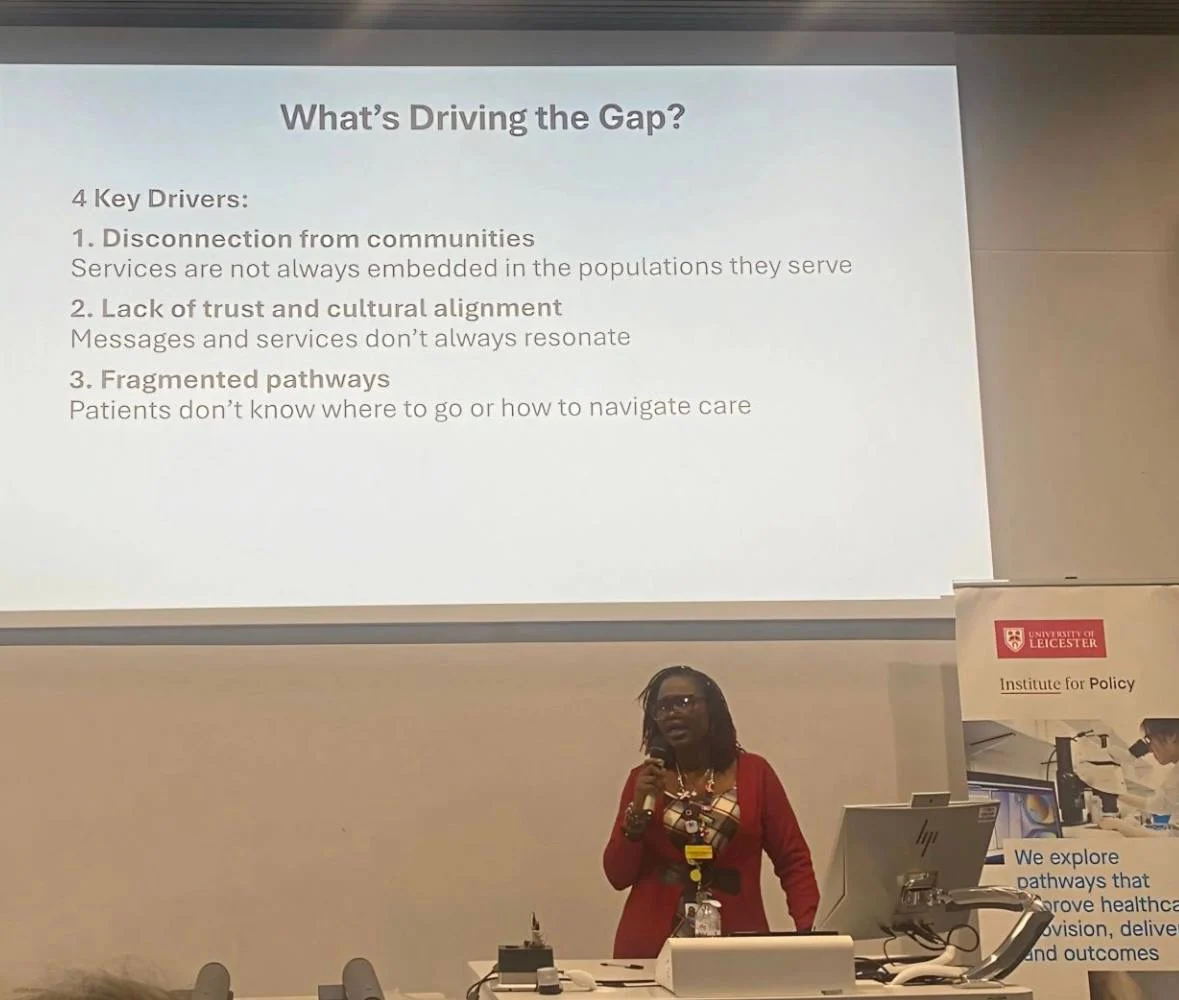 We were challenged from the start to reflect on what we truly understand about health equality, and more importantly, what we are doing about it. I had the privilege of sharing work close to my heart: improving breast cancer outcomes for Black women in Leicester. We uncovered a stark reality: Black women in Leicester are five times less likely to engage with breast services, including screening and urgent referral pathways.