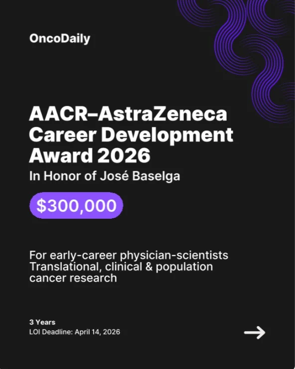 Follow OncoGrants by OncoDaily for daily updates on cancer funding, fellowships and career-shaping opportunities.”