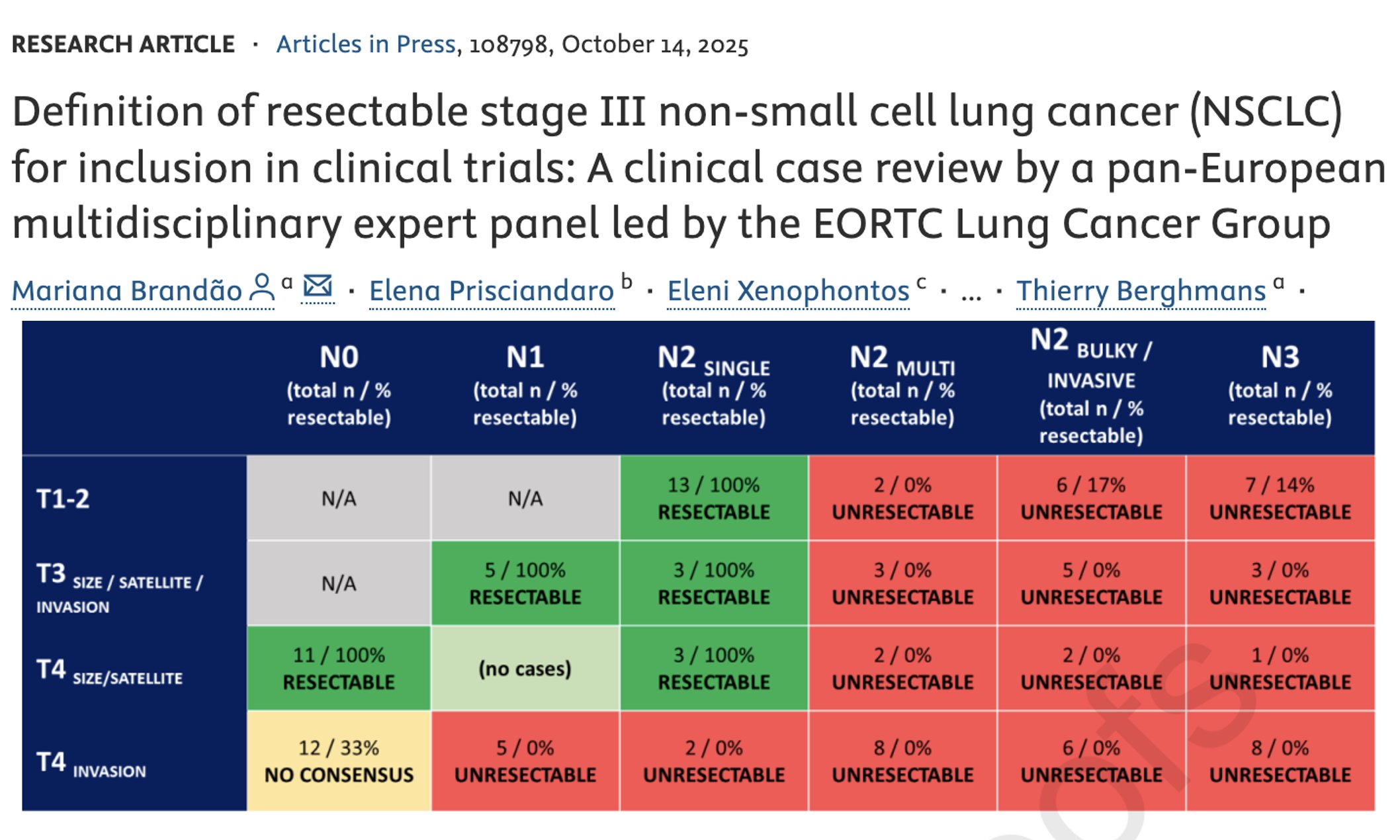 Title: Definition of resectable stage III non-small cell lung cancer (NSCLC) for inclusion in clinical trials: A clinical case review by a pan-European multidisciplinary expert panel led by the EORTC Lung Cancer Group