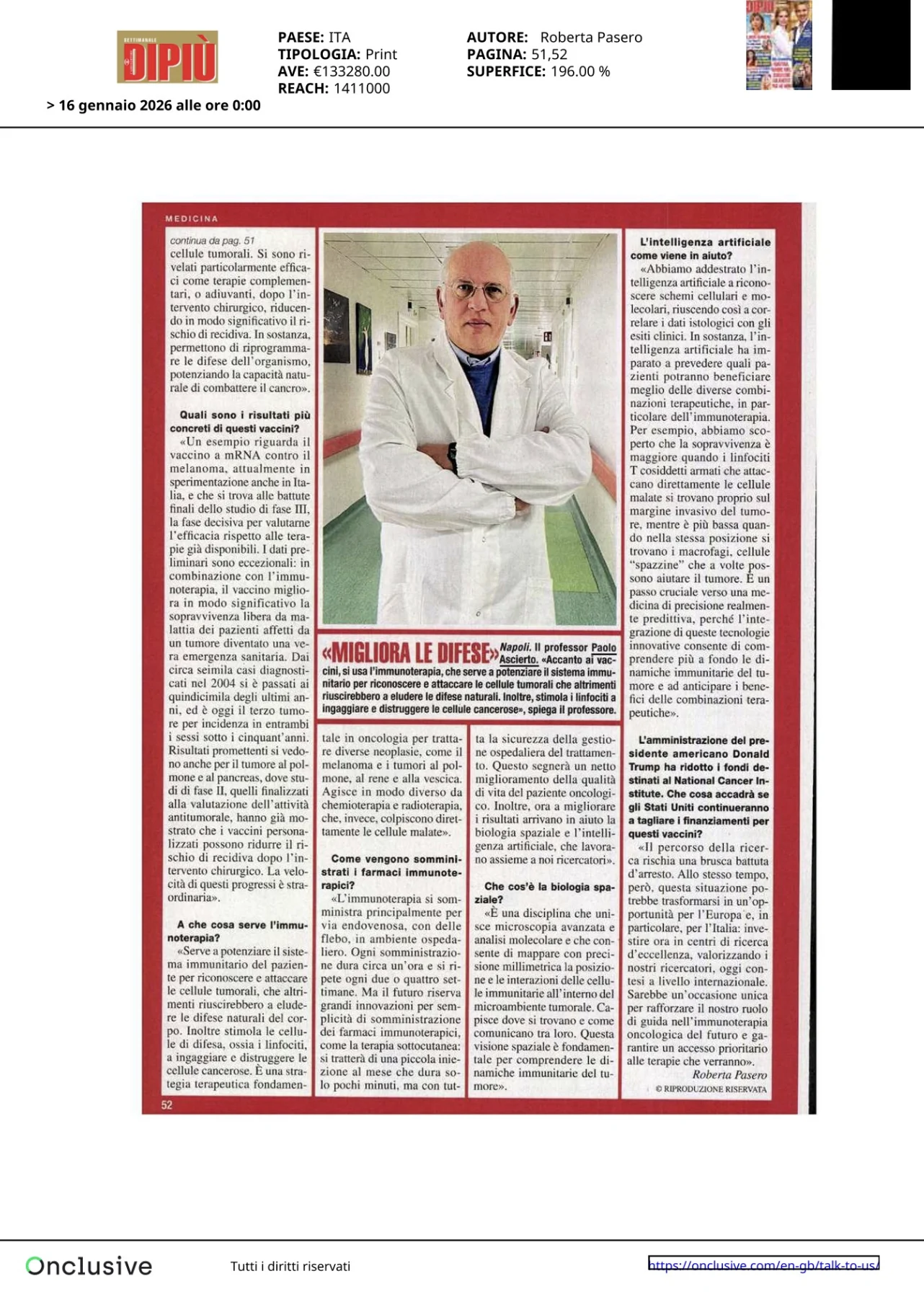 Paolo A. Ascierto, Full Professor of Oncology at the University of Naples Federico II, Director of the Department of Melanoma, Cancer Immunotherapy and Development Therapeutics at the National Cancer Institute IRCCS Pascale Foundation, shared a post on LinkedIn: