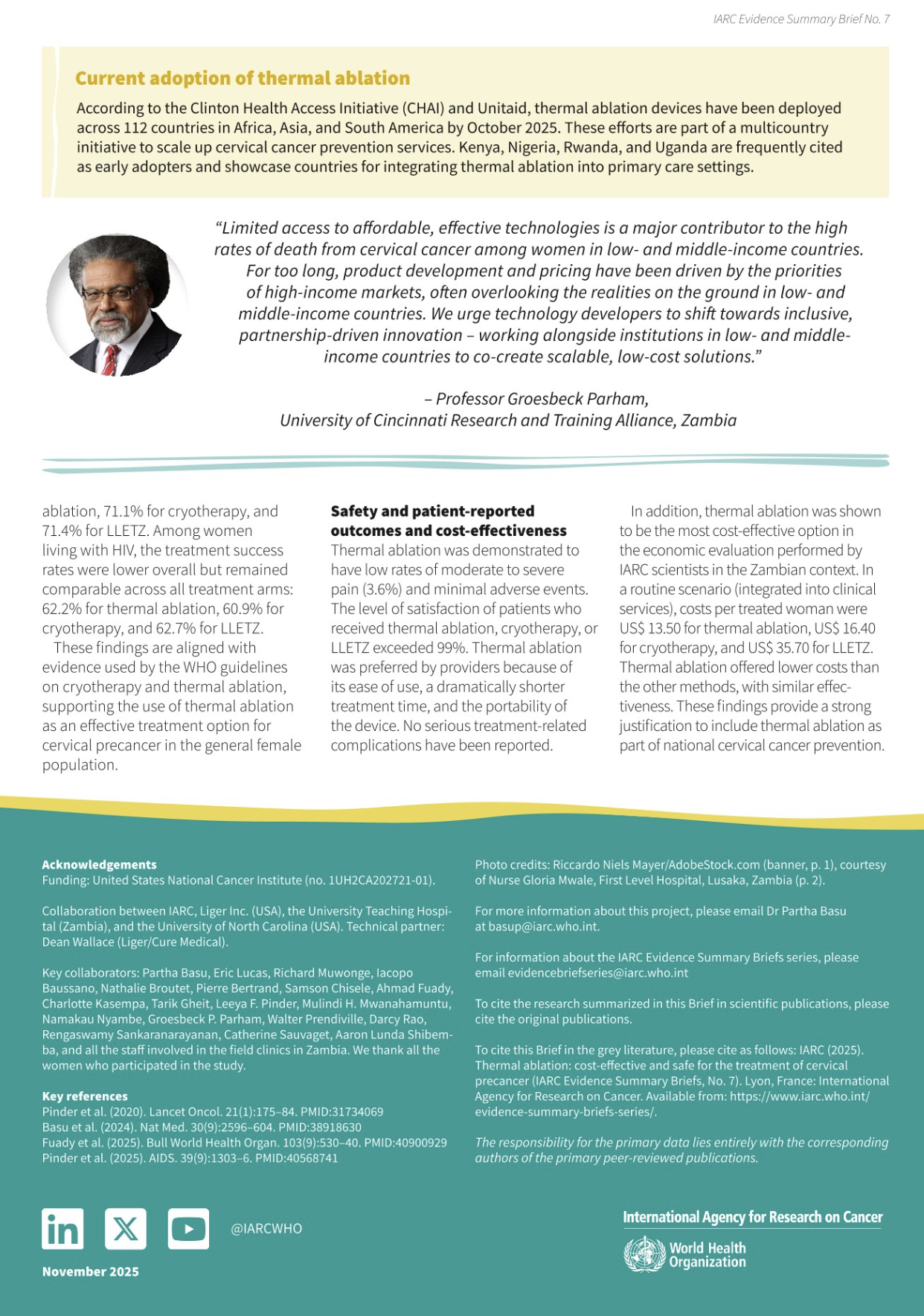 Thank you Prof Groesbeck Parham and Prof. Leeya Pinder and your wonderful team for successfully completing this very challenging study recruiting more than 3000 women for cervical precancerous treatment.”