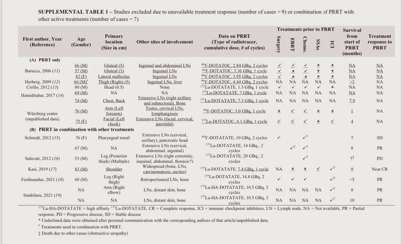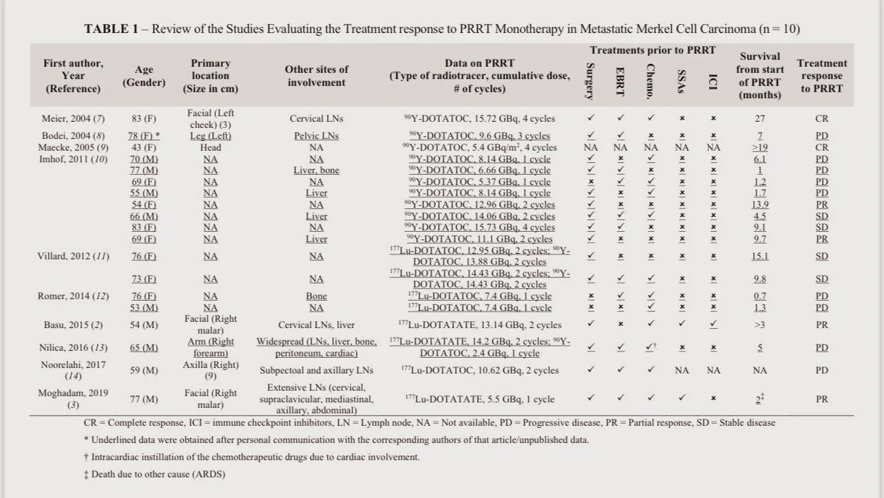 Previously we published on patients with Merkel Cell Cancer treated with PRRT (177Lu- and/or 90Y-).