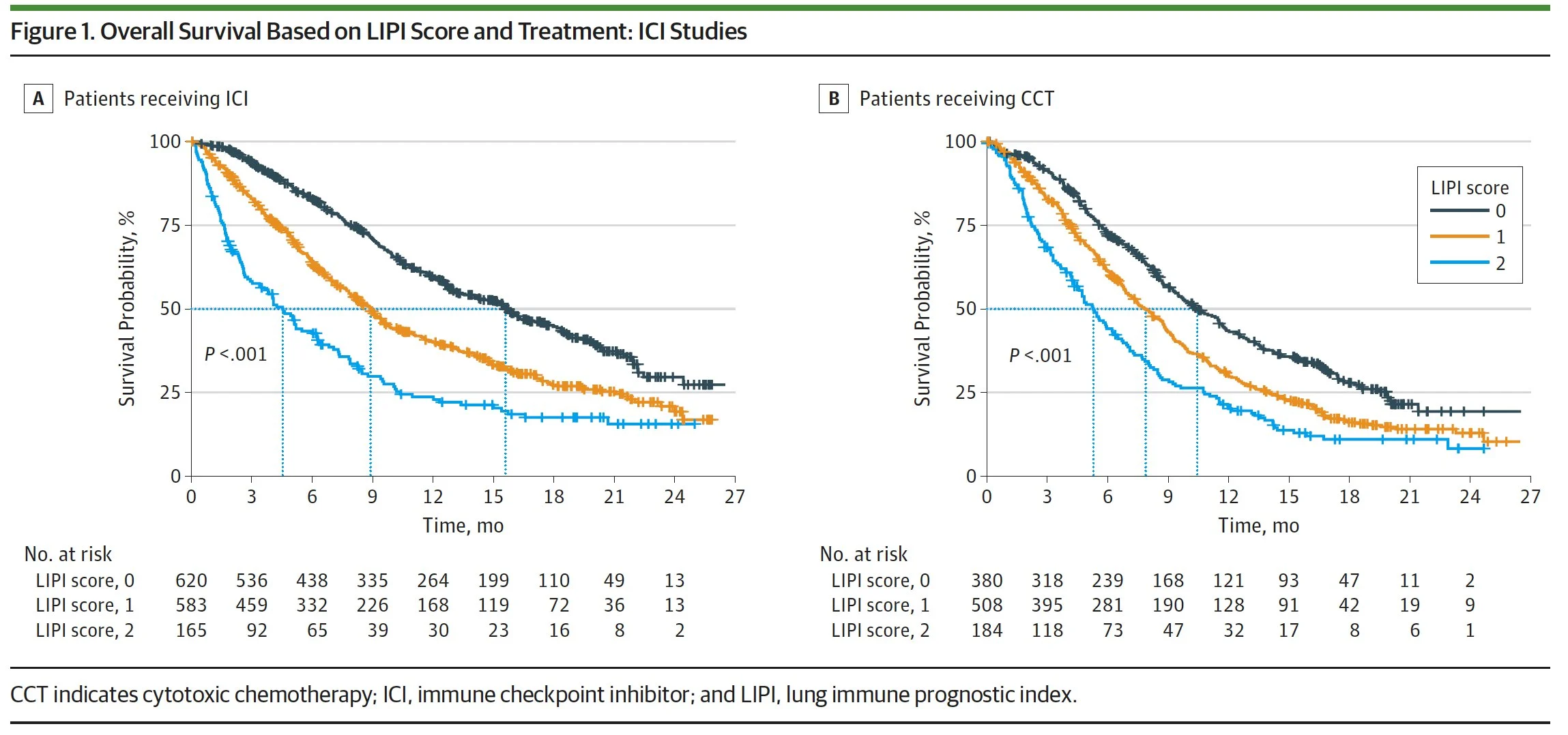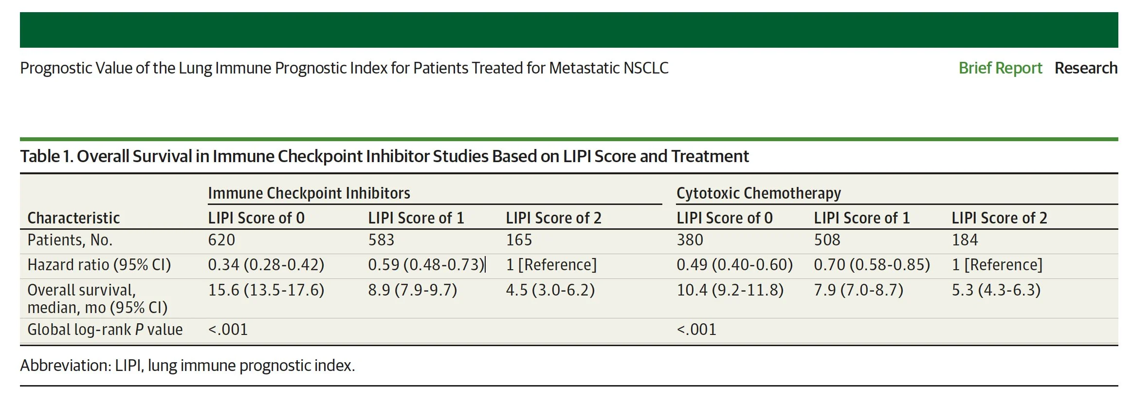 He concludes that ‘baseline LDH level and dNLR are important prognostic biomarkers irrespective of treatment modality for patients with mNSCLC’ meaning that whether the patient receives radiation, chemo, or checkpoint inhibitors, the level of lymphocyte count (ALC) is the critical biomarker for outcomes regardless of treatment modality.