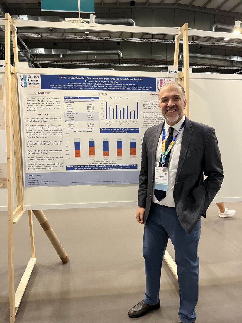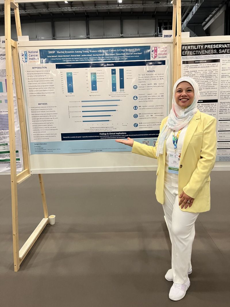 Also the main contributors are Nourhan Adel Kholoud Reda ,SAP User Jakline Safwat Yomna Khalil. It was a special moment to represent our institution and share our experience with the international oncology community at ESMO2025, highlighting the crucial role of patient education and supportive care in enhancing treatment outcomes.