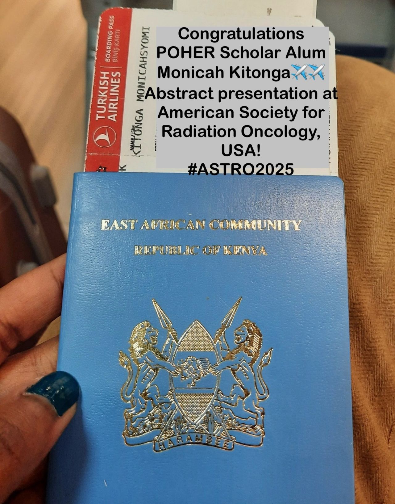 Congratulations Monicah Kitonga : Pan-African Organization For Health, Education and Research (POHER) scholar alum…..Abstract accepted for presentation at The American Society for Radiation Oncology (ASTRO) meeting, USA