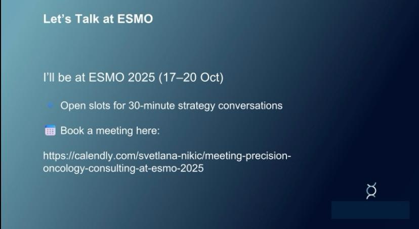 I’ll be at ESMO25 (17–20 Oct) and keeping my schedule open for 30-minute strategy conversations with diagnostic and oncology leaders.