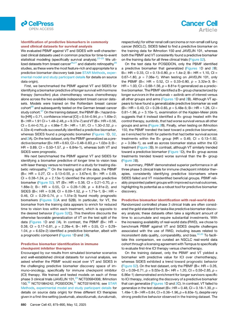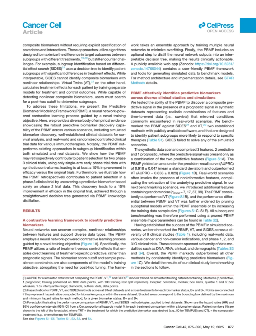 The promise of precision medicine is simple: give each patient the treatment that works best for their specific disease. A key part of this approach is the use of predictive biomarkers. These are measurable signals, such as genes or proteins that help identify which patients are more likely to benefit from a particular treatment. Clinical trials that select patients based on these biomarkers are about twice as likely to lead to an approved medicine. The Predictive Biomarker Modeling Framework (PBMF) uses artificial intelligence to discover new biomarkers.