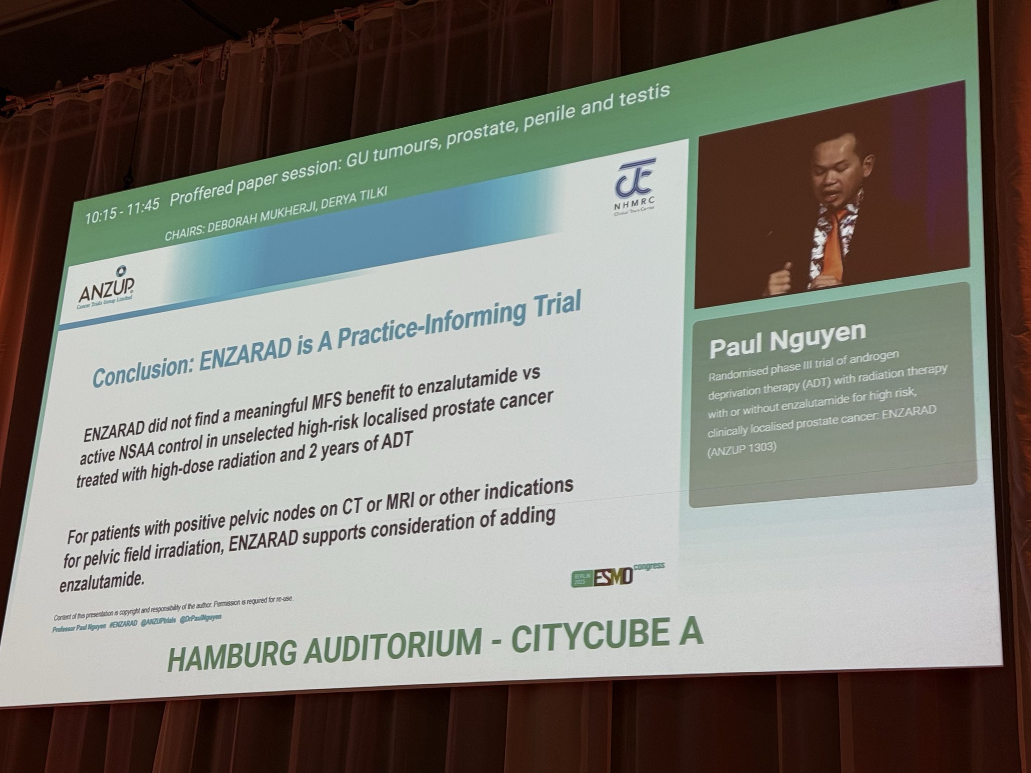“Great talk from Paul Nguyen – enzalutamide did not improve MFS for high risk localized prostate cancer in ENZARAD.”