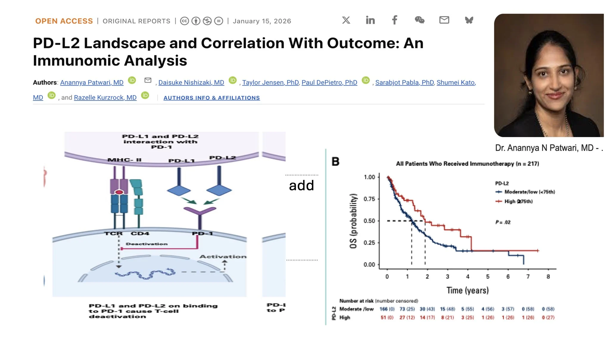 “Hot off the press. It’s not just about PDL1 and PD1. High PDL2 RNA correlates with longer survival after anti-PD1 IO.”