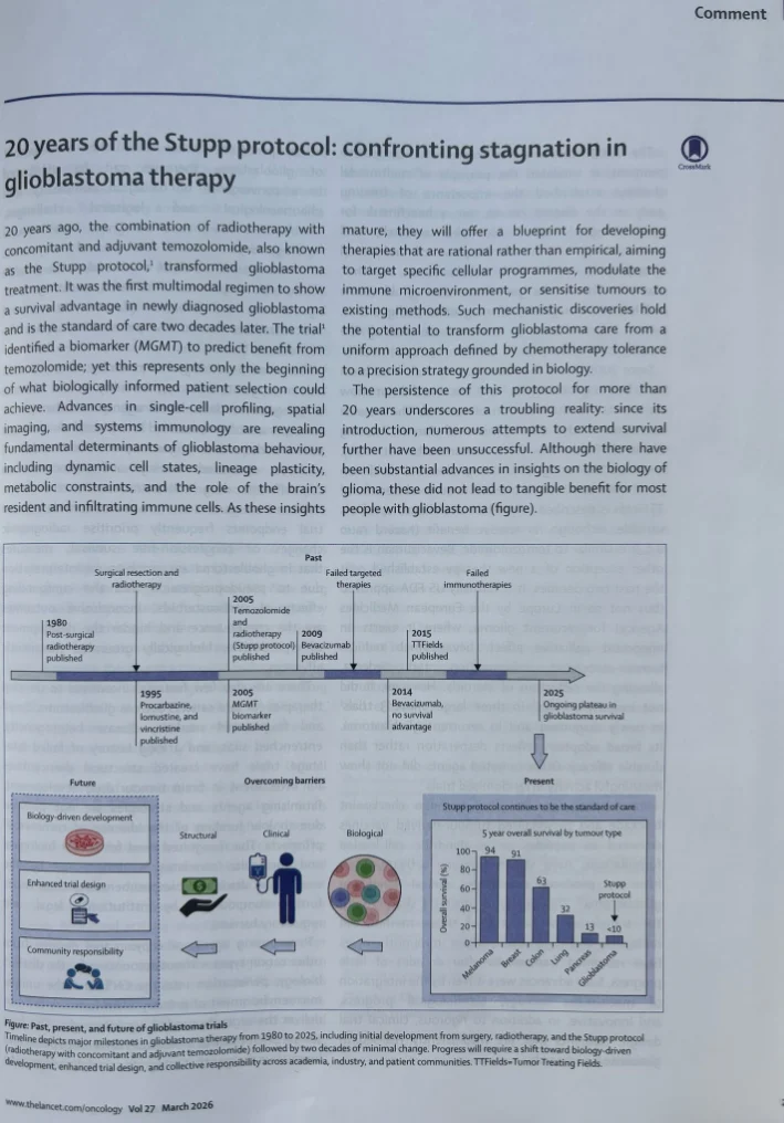 “I’m new to the Glioblastoma therapy field, but when the inventor of the Stupp protocol writes an editorial in The Lancet Oncology pleading for progress after 20 years, we need all hands on deck!”