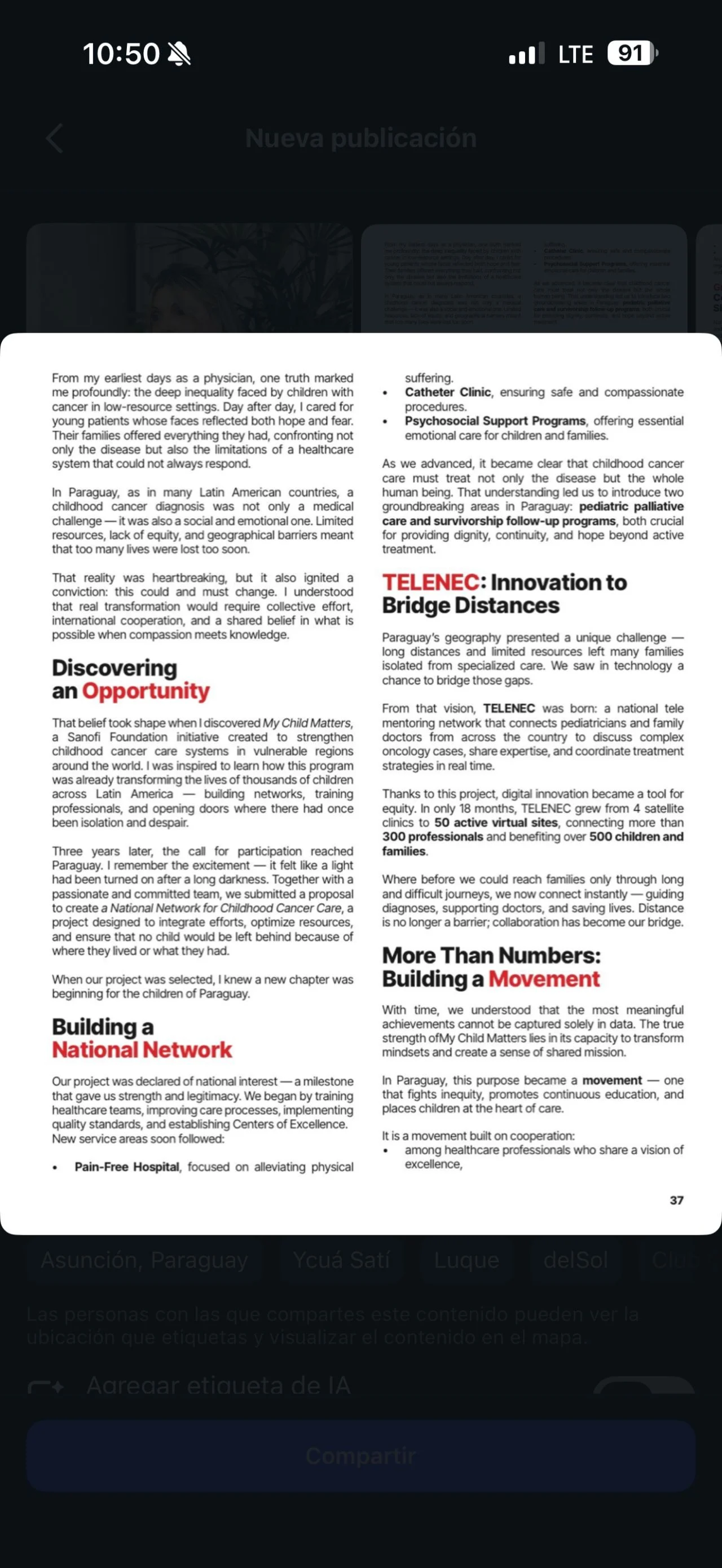 We are proud to share that Prof. Dr. Angélica Samudio, a leading expert in pediatric hemato-oncology in Paraguay and medical director of the Renaci Foundation, recently published an article in the prestigious international journal CancerWorld x OncoDaily.