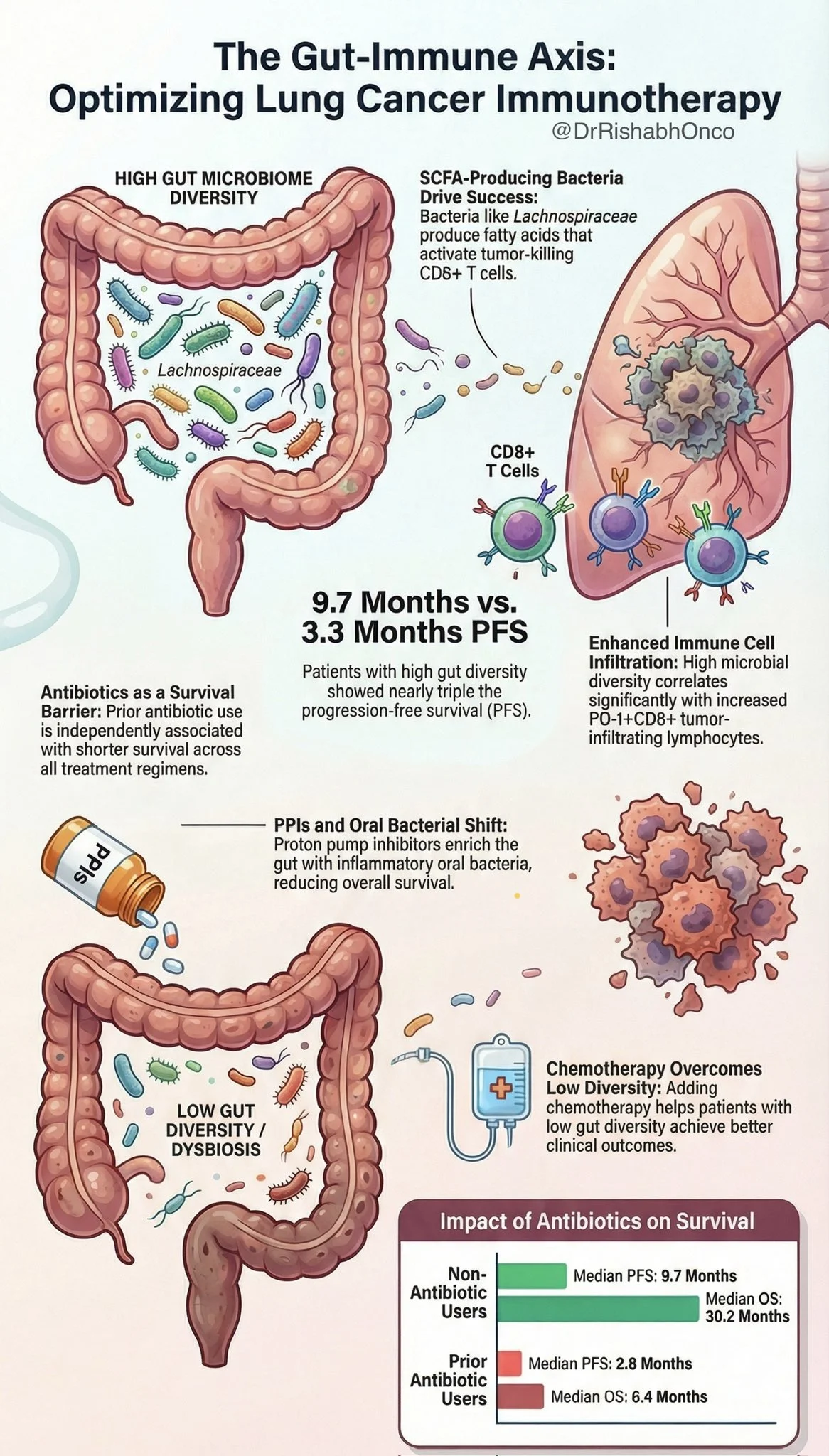 “Gut microbiome may decide how dual immunotherapy works in advanced NSCLC. A prospective ESMO Open 2026 study links baseline gut diversity to outcomes with nivolumab + ipilimumab.