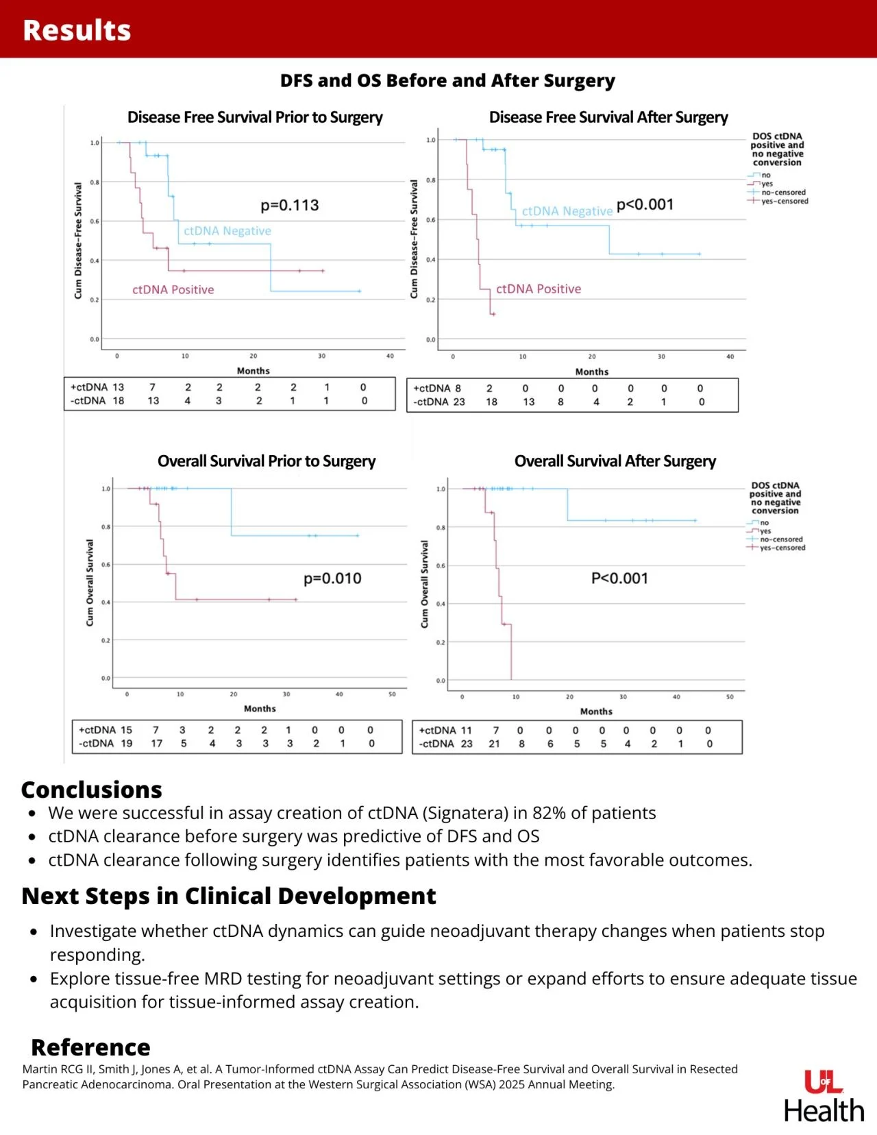 I am pleased to share findings from our recent oral presentation at the Western Surgical Association annual meeting, highlighting the role of circulating tumor DNA (ctDNA) in pancreatic ductal adenocarcinoma (PDAC).