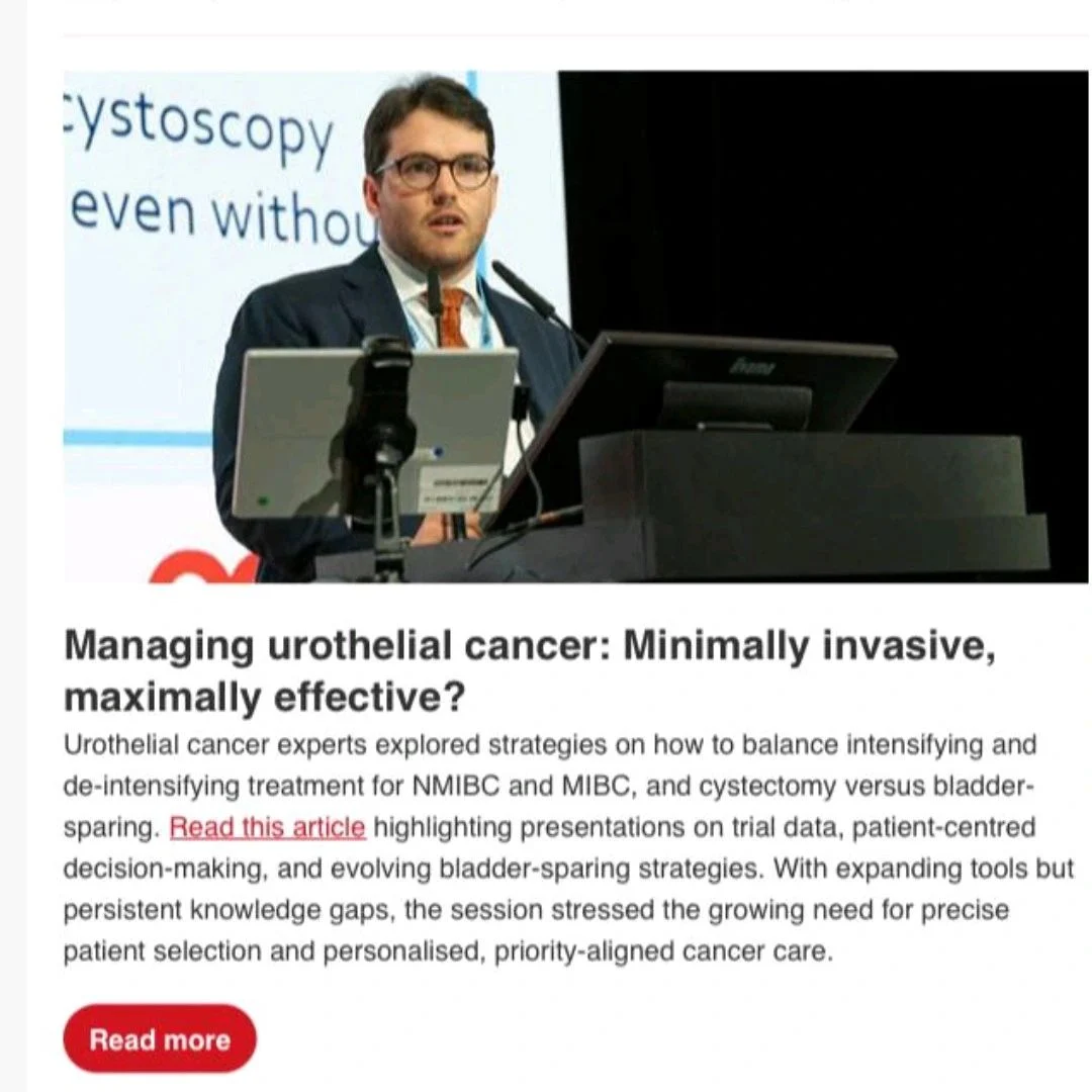 “Honored to have delivered a state-of-the-art lecture on treatment de-intensification in NMIBC during the plenary session of the European Association of Urology congress in London EAU 2026.