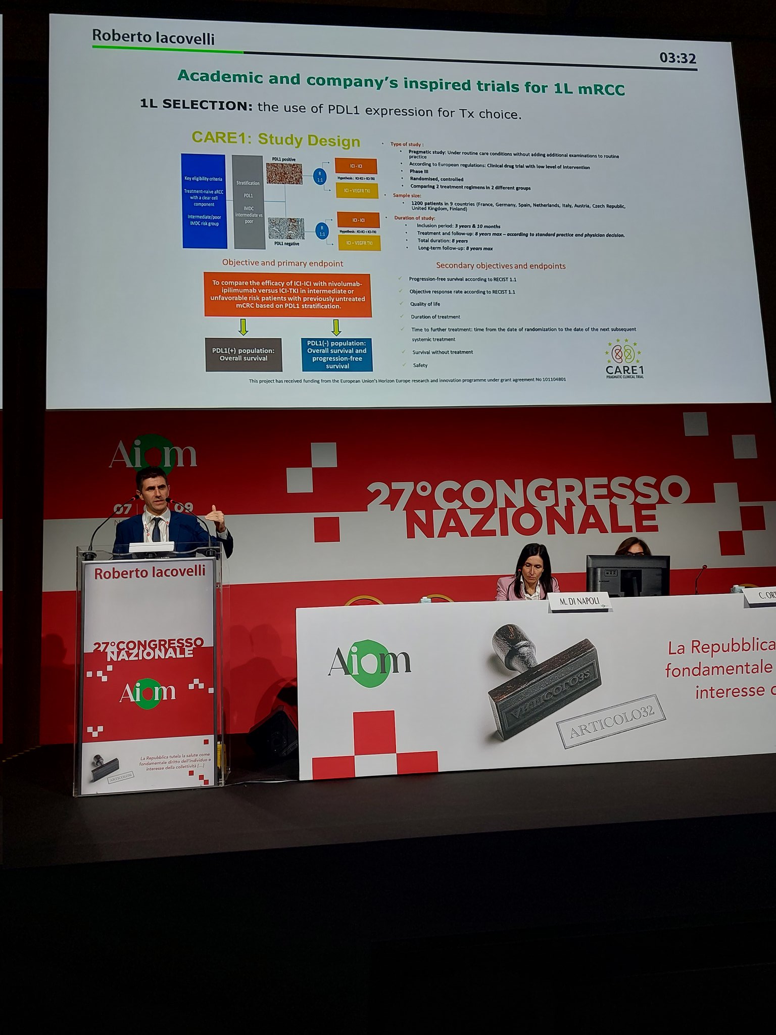 “Insightful session by Roberto Iacovelli at AIOM25 on adjuvant approaches in RCC. The CARE1 experience highlights how global collaboration can refine patient selection and guide real-world therapeutic choices”