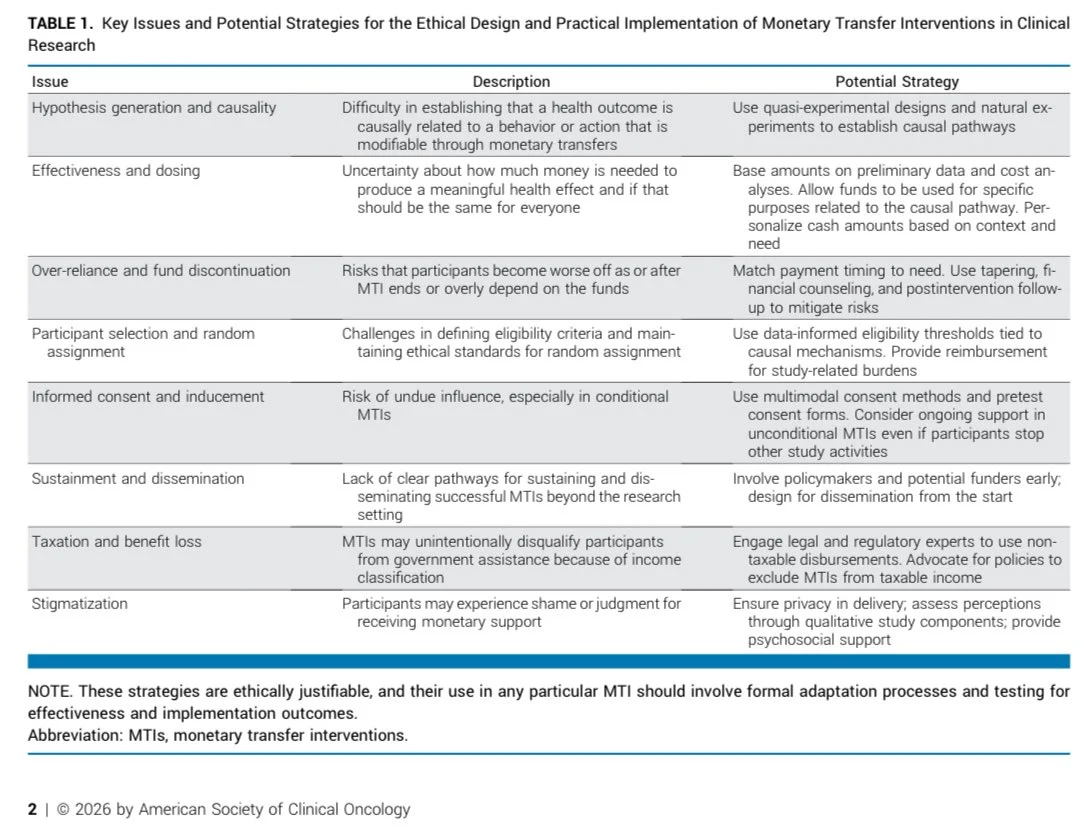 Title: Ethical Design and Implementation of Monetary Transfer Interventions in Clinical Cancer Research