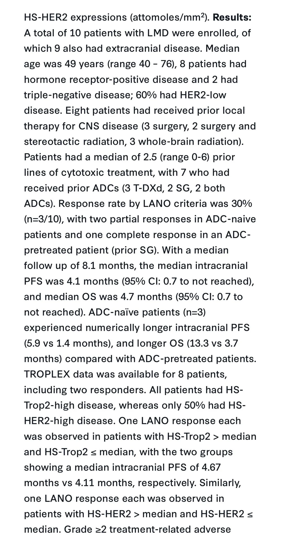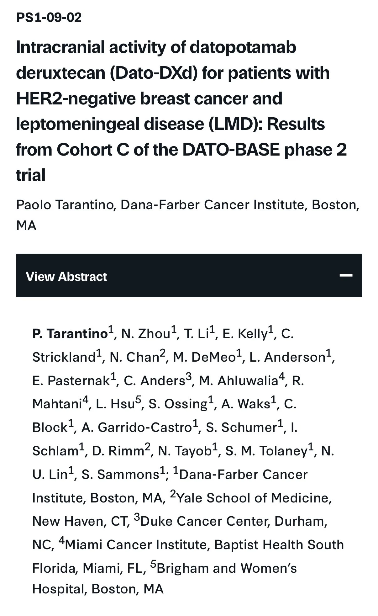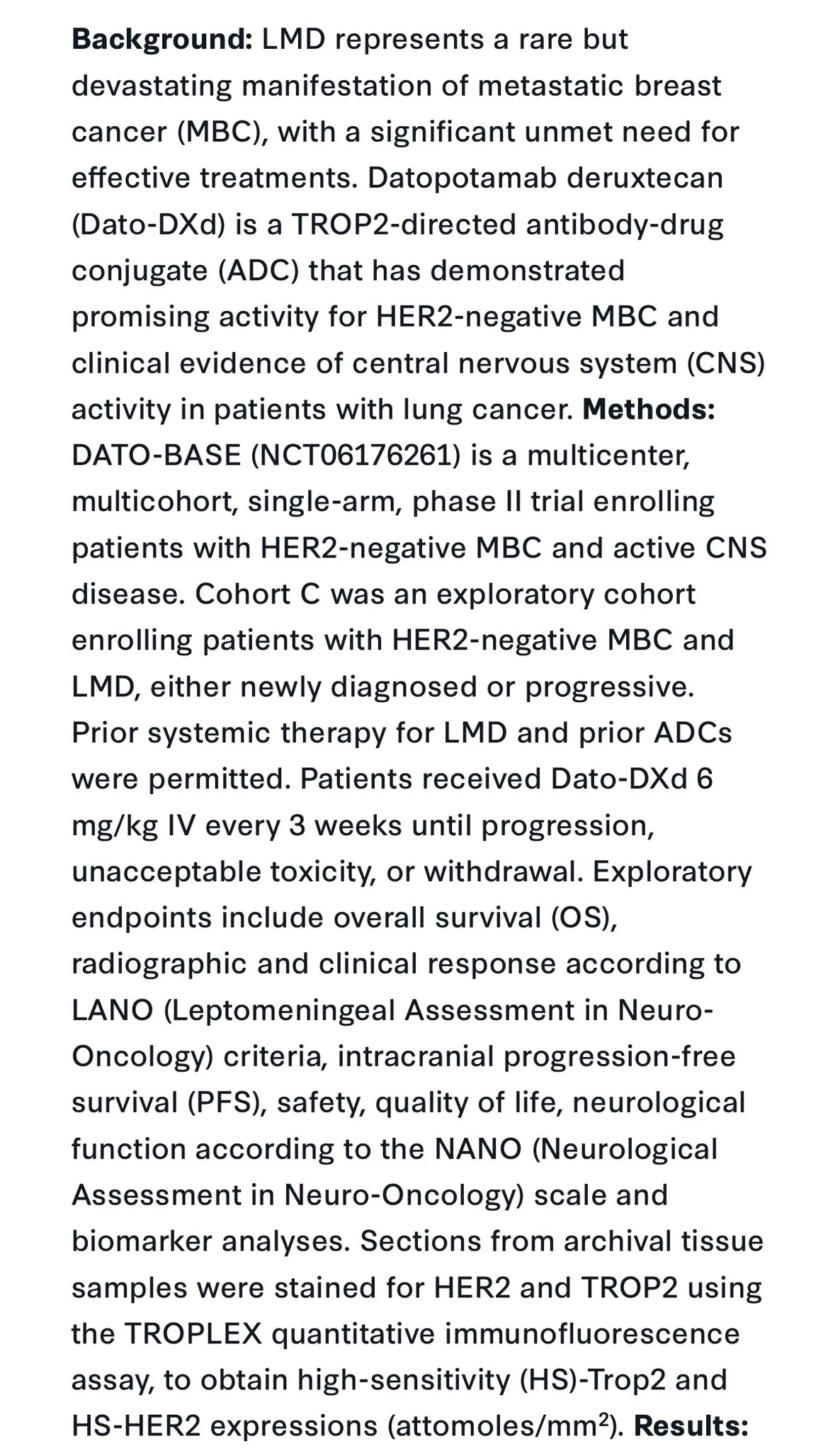 “At SABCS25, we’ll present Cohort C of DATO-Base, academic IST, and the first prospective trial of Dato-DXd in patients with LMD from HER2-MBC.
