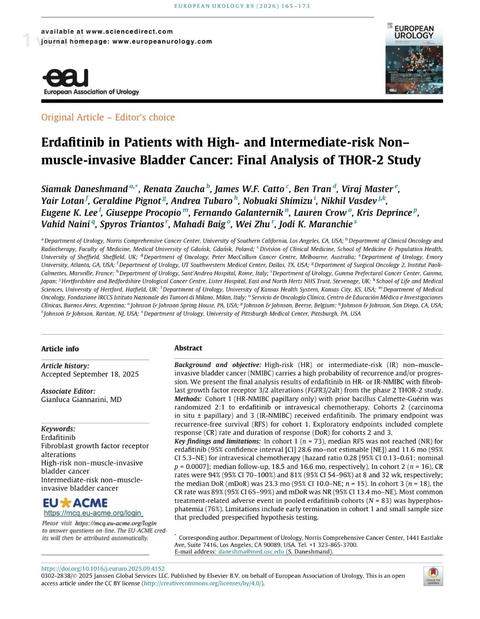 “Final THOR-2 results out in EU Platinum – Erdafitinib in FGFR-altered NMIBC