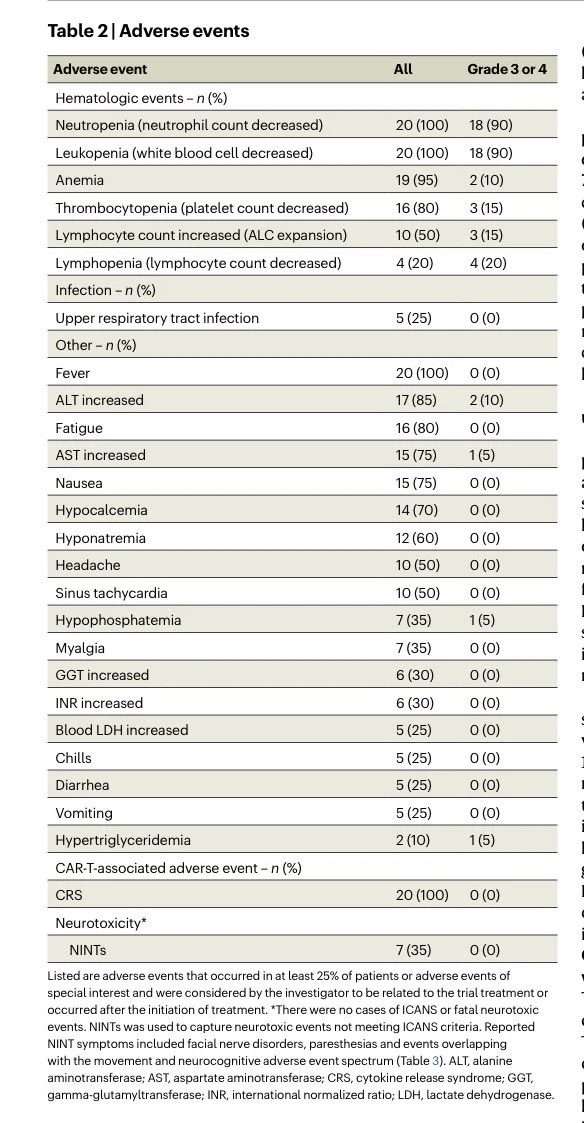 - Non ICANS neurotoxicity: 35% (15% of pts with persistent toxicity)