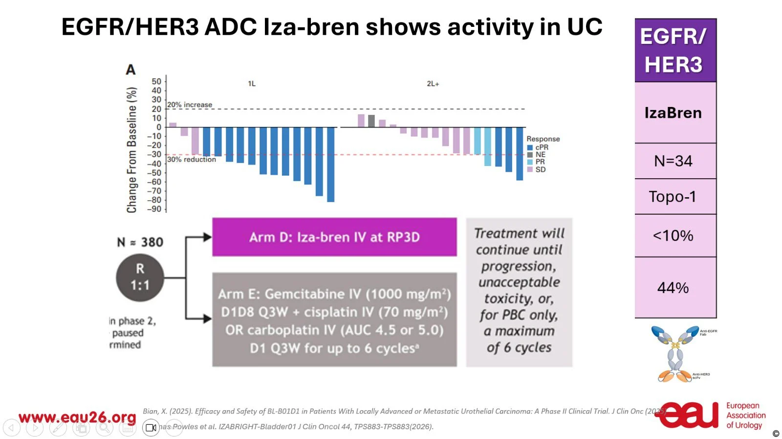 There’s promising activity for Izabren (dual EGFR/HER3, Topo1) in pretreated patients with ORR 44% and DCR 88%.