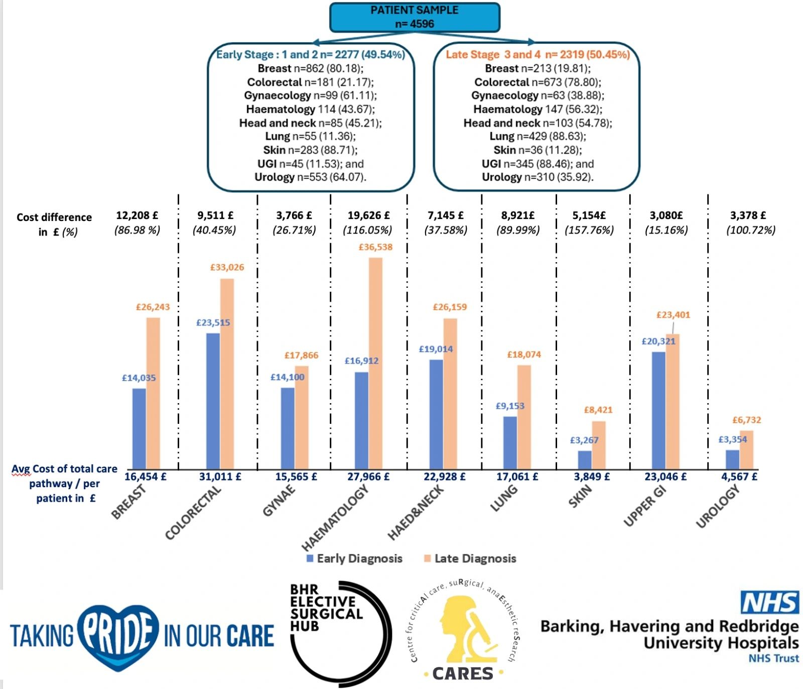 This research, conducted at the largest District General Hospital in East London, highlights the significant economic and patient benefits of early cancer detection. Our key findings show:
