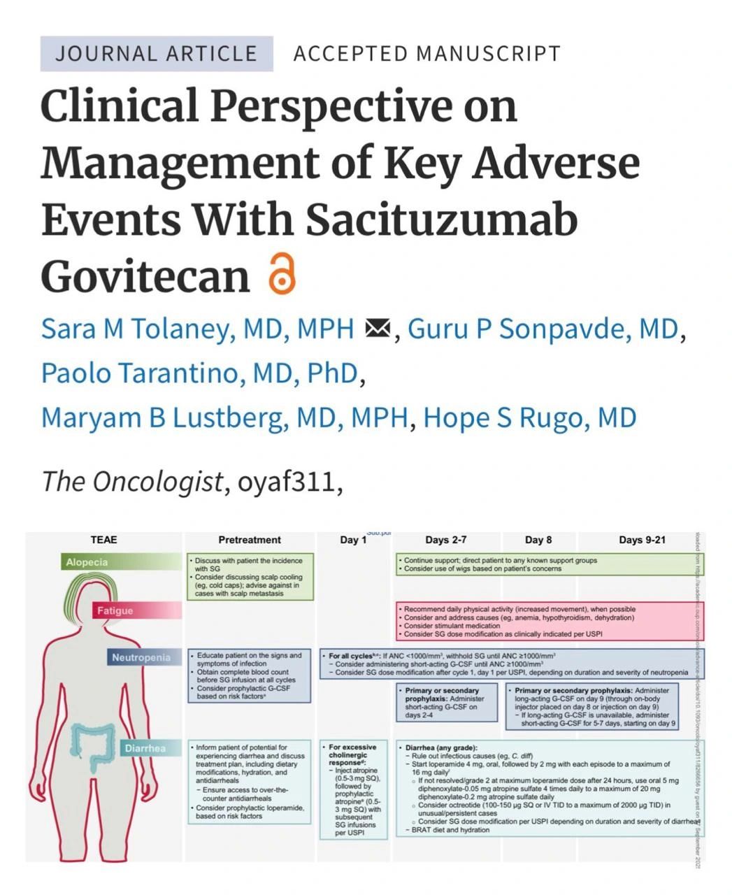 “A nice perspective on how to manage Sacituzumab Govitecan side effects in the clinic!”
