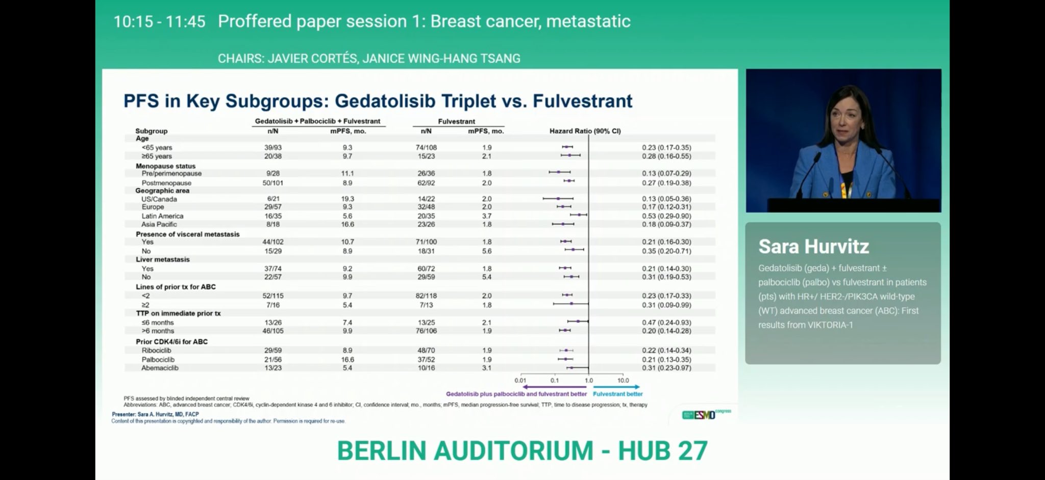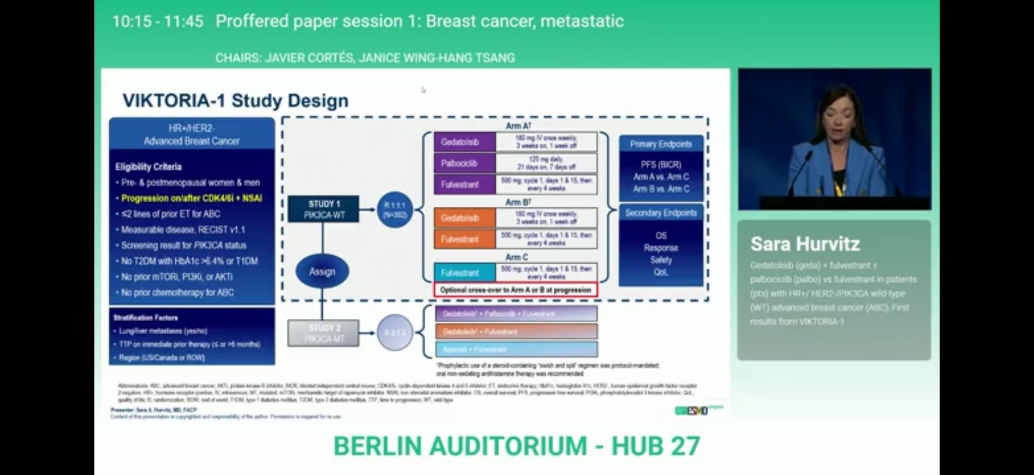 “VIKTORIA-1 w PI3K/AKT/mTOR (PAM) pathway Inhibitor gedatolisib + fulvestrant +/- palbo improves PFS in WT as triplet and doublet with different AEs—stomatitis increased, hyperglycemia decreased