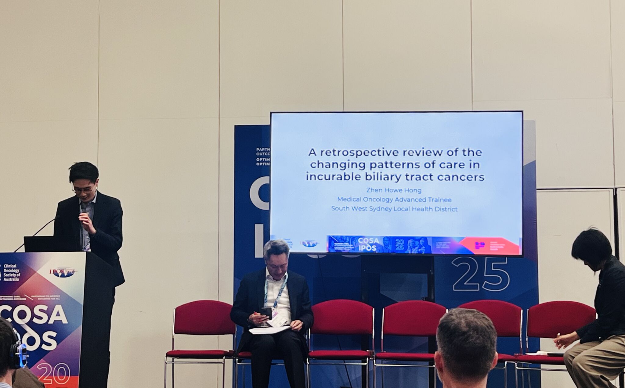 “Pleasure to speak at the MDT panel at COSA/IPOS, which highlights the importance of multidisciplinary care in cancer treatment. Proud to see our registrar Dr Zhen Hong present his research on biliary cancers in SWSLHD. And always good catching up with colleagues.”