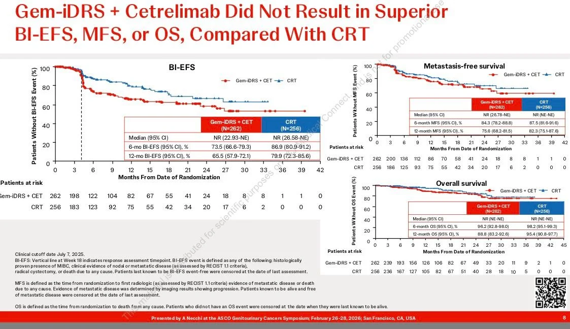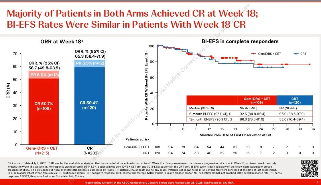 Title: Gemcitabine intravesical system (Gem-iDRS) in combination with cetrelimab (CET) versus chemoradiotherapy (CRT) in muscle-invasive bladder cancer (MIBC): SunRISe-2 final results.