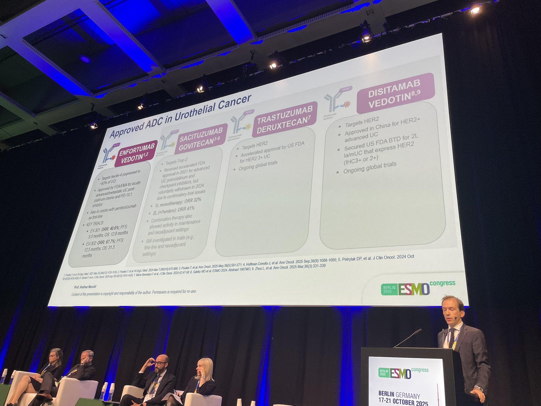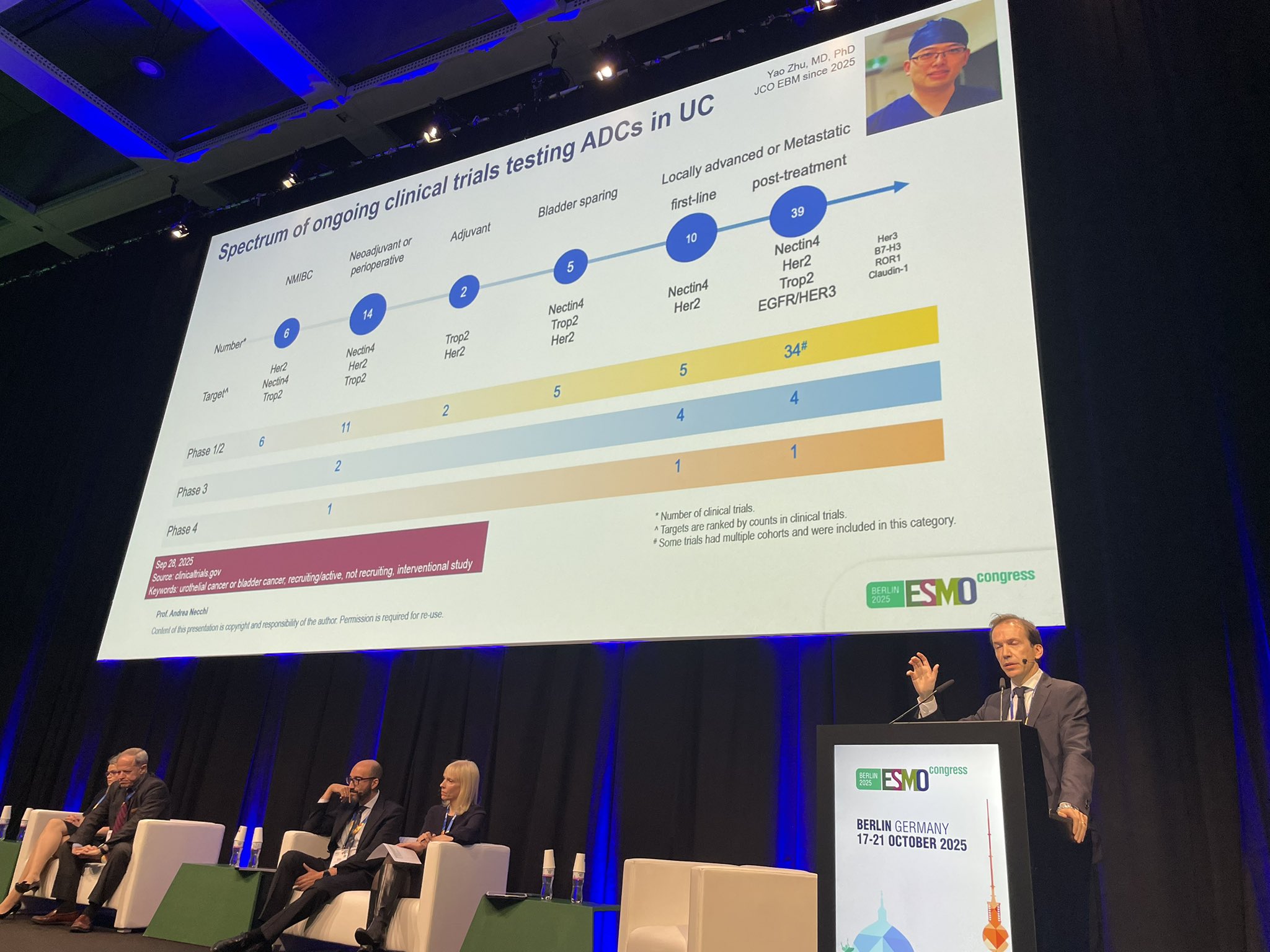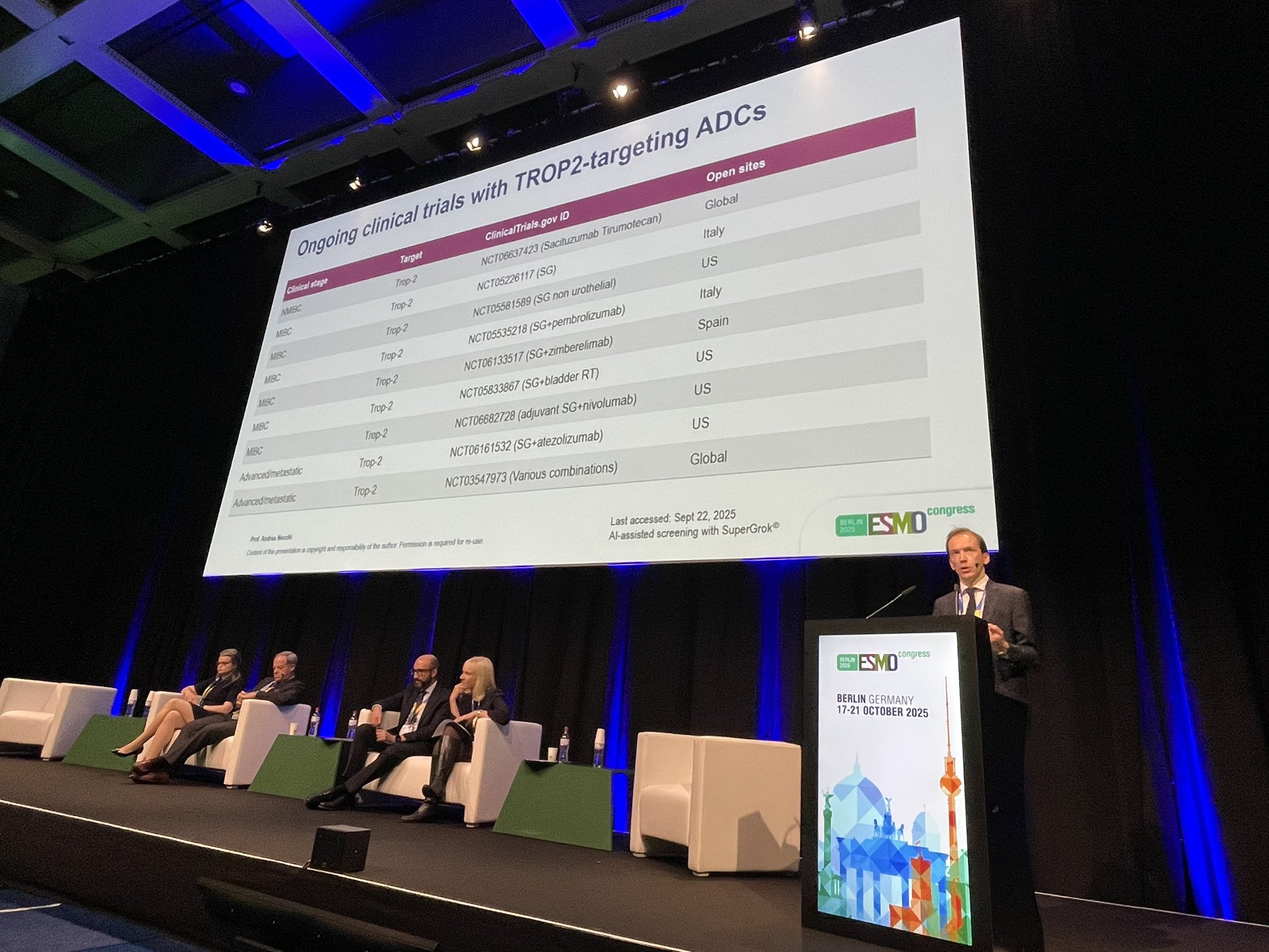 “Learned so much from this ESMO25 overview of existing ADCs in bladder cancer by Andrea Necchi in a session hosted by Silke Gillessen and Enrique Grande. The sheer number of trials examining ADCs in bladder cancer is mind-boggling, including multiple phase 3s.”
