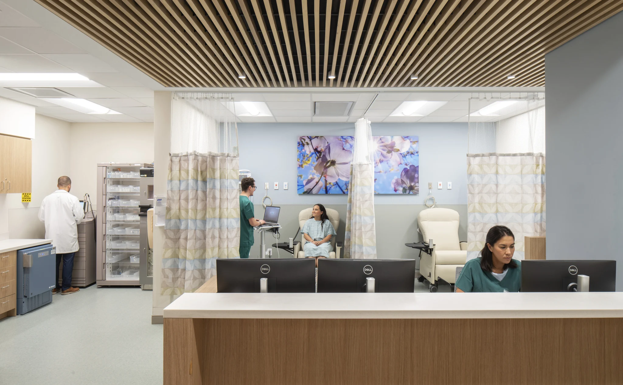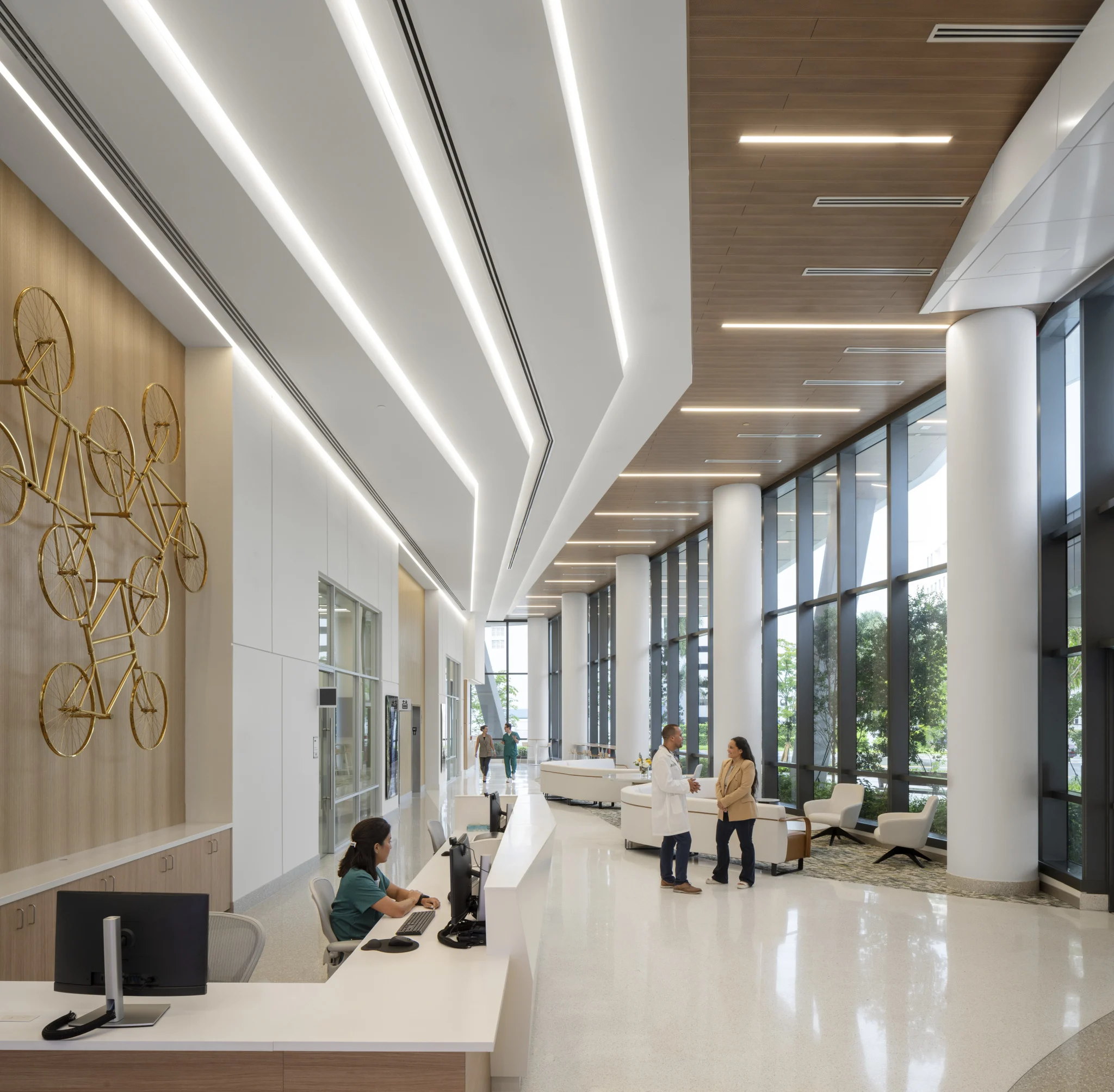 Just a short elevator ride away, AI-driven ‘dry labs’ and research ‘neighborhoods’ foster collaboration on tumor biology, cancer epigenetics, translational and clinical oncology, and cancer control. By linking these scientific worlds, discoveries can move faster from the lab bench to the patient’s bedside. In all, the facility creates a seamless, patient-centered environment where hope and healing are infused into every space.