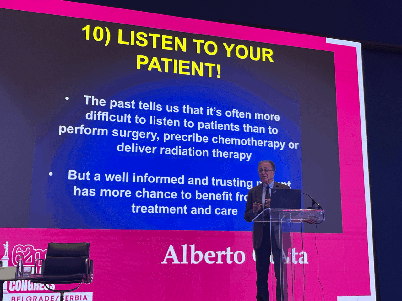 “Lifetime journey and paradigm shift in breast cancer understanding and treatment” by Alberto Costa, European School of Oncology. We had the privilege to listen to Alberto Costa, whose lifetime dedication to breast cancer treatment, education and advocacy has shaped how we understand and treat the disease today. Key messages that I got from the lecture: