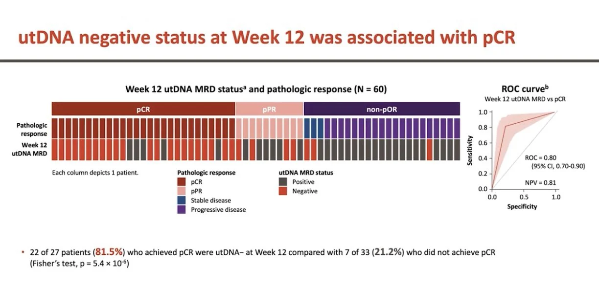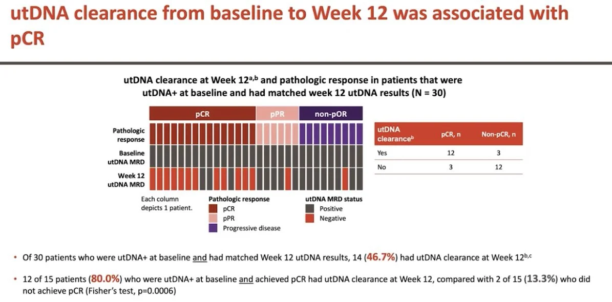 Less is known about utDNA. In SUNRISE4 the utDNA results are novel and show utDNA clearance, which may correlate with pCR. Integrated utDNA and ctDNA analysis will help guide treatment IMO.”